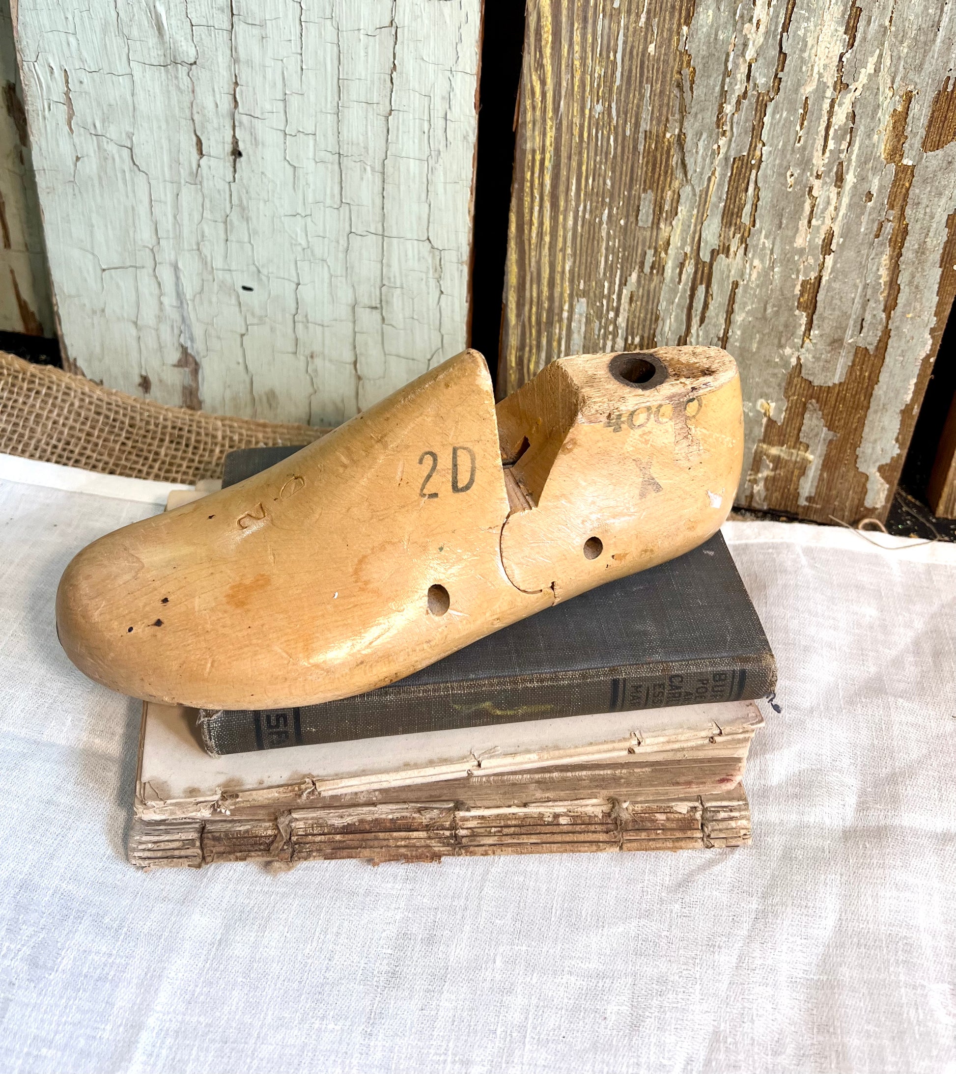 Old Antique shoe mold with metal heel plate. 8 1/2" long.