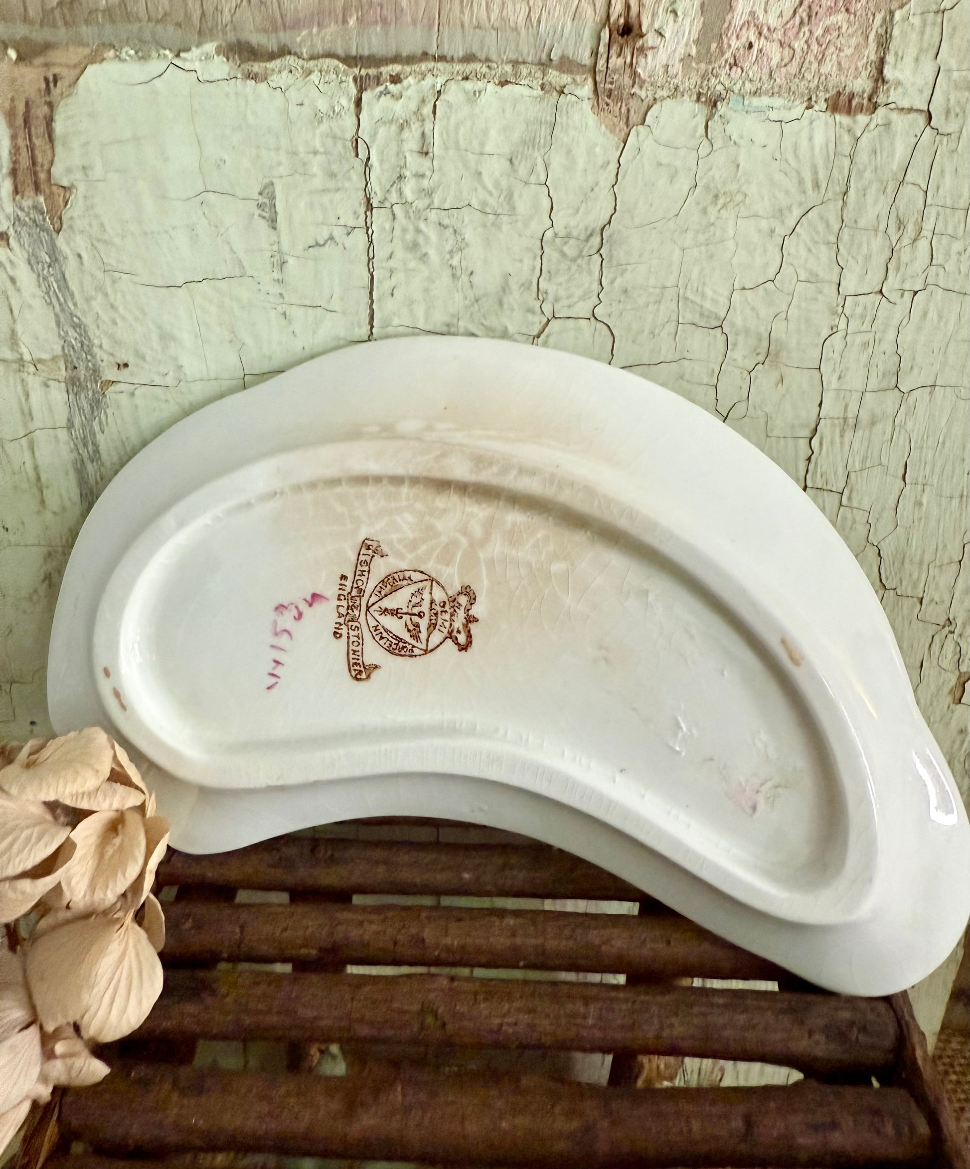 Bishop Stonier Bone dish. Lots of staining and crazing! beautiful stamp