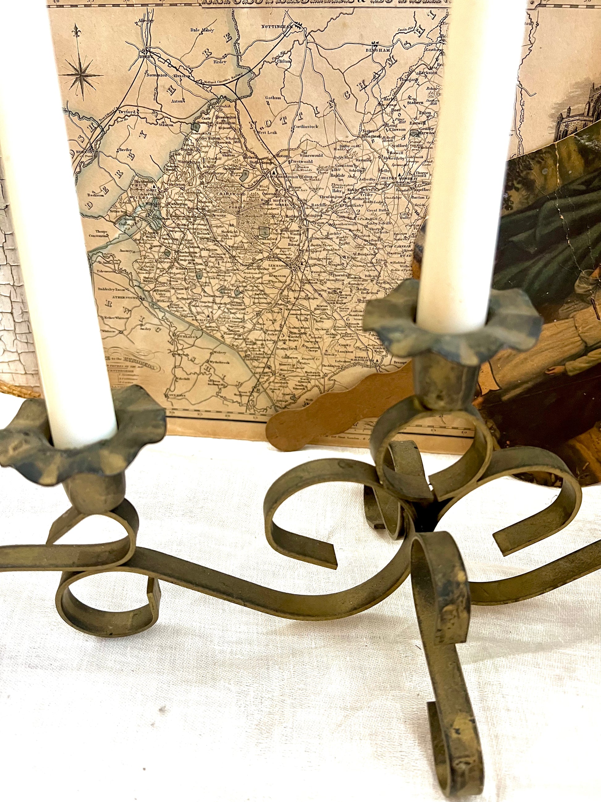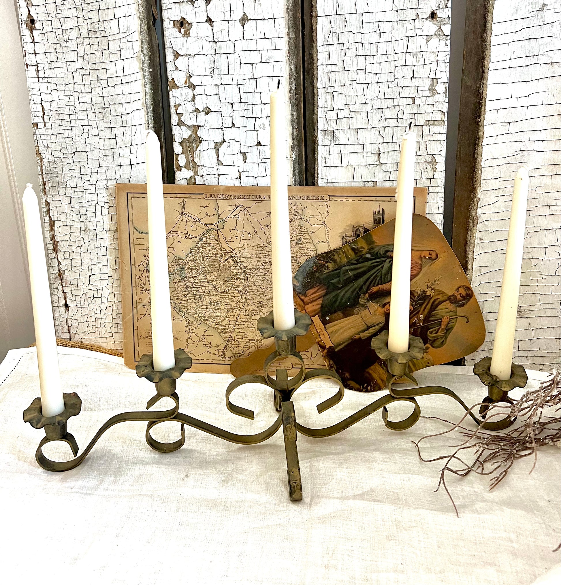 Five candle brass candelabra. Beautiful scroll detail. 20" long, 6 1/2" tall.