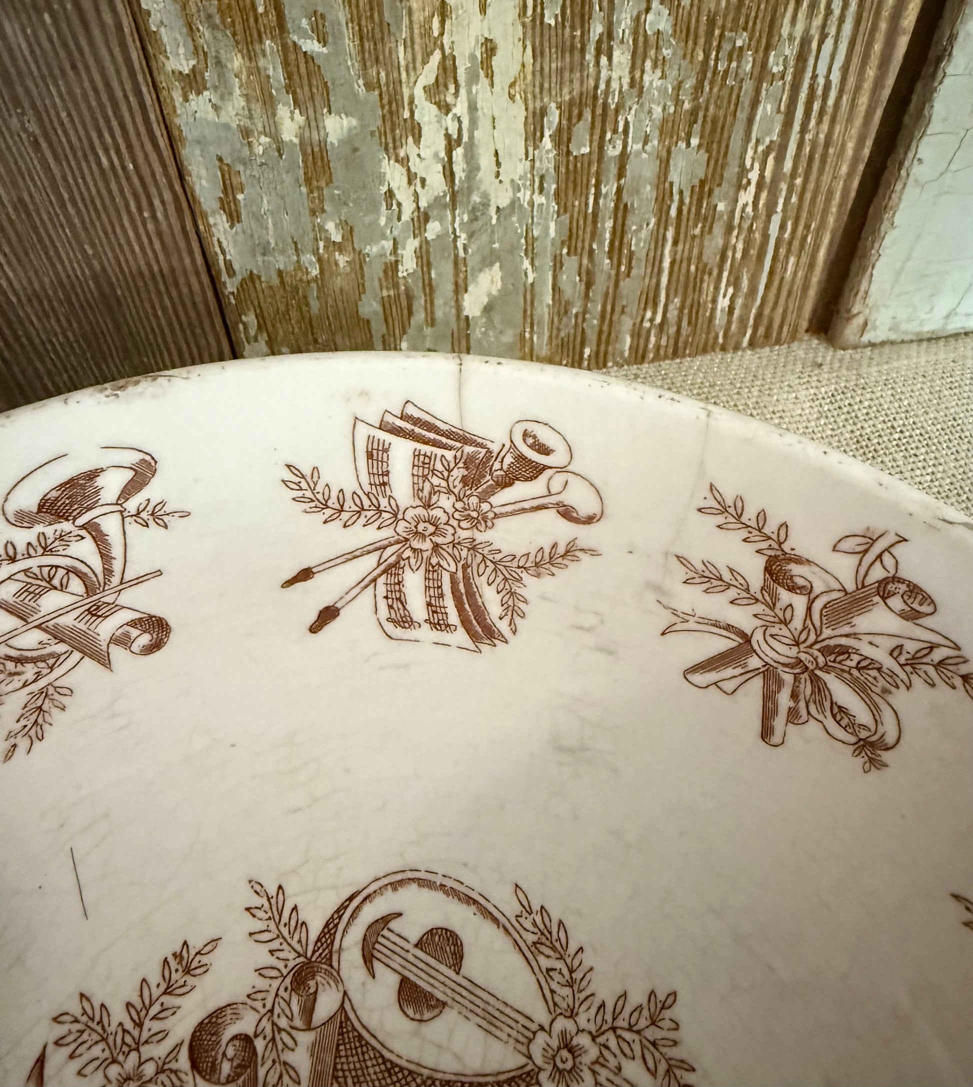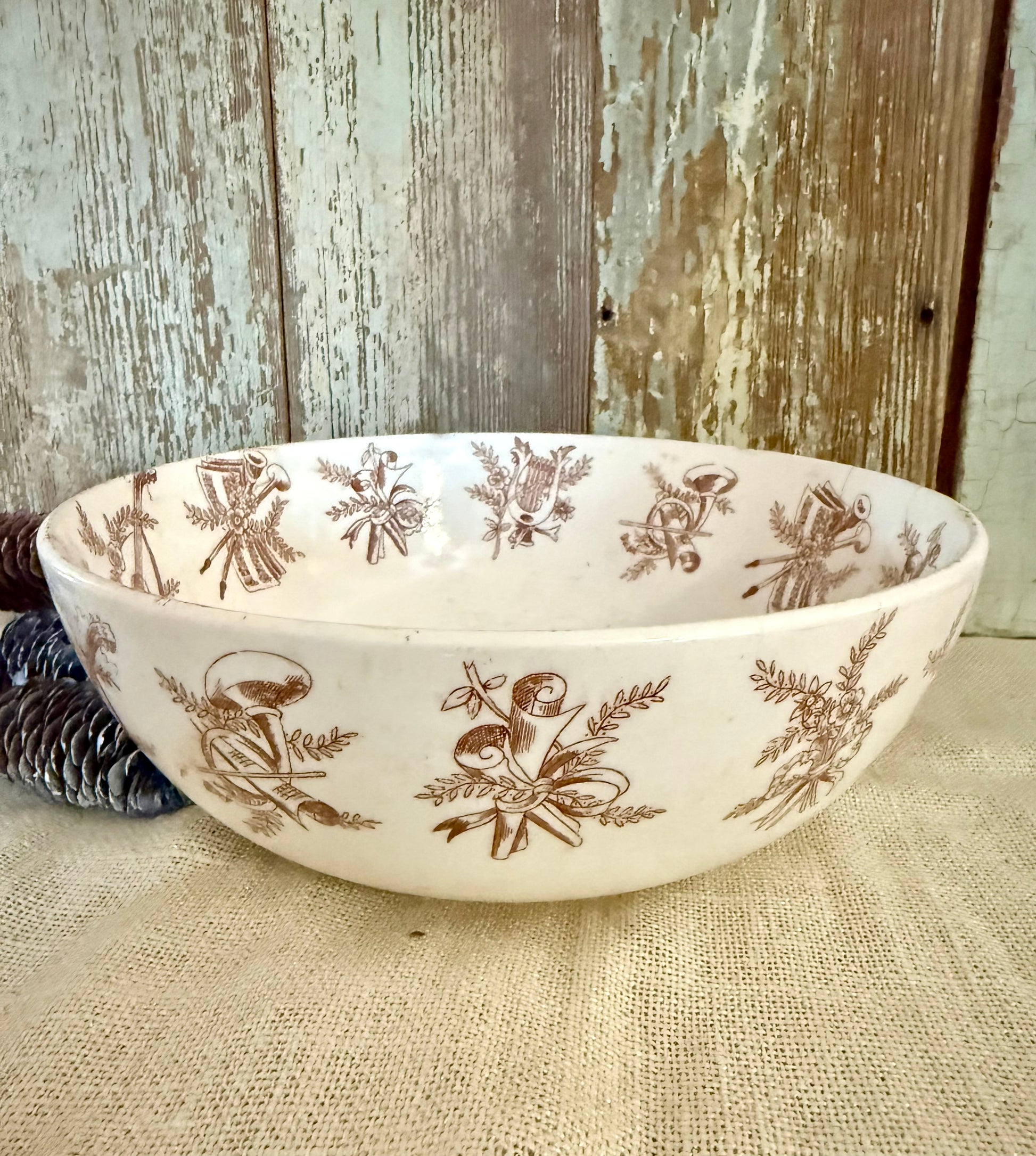 Brown Transferware Musical Instrument Bowl