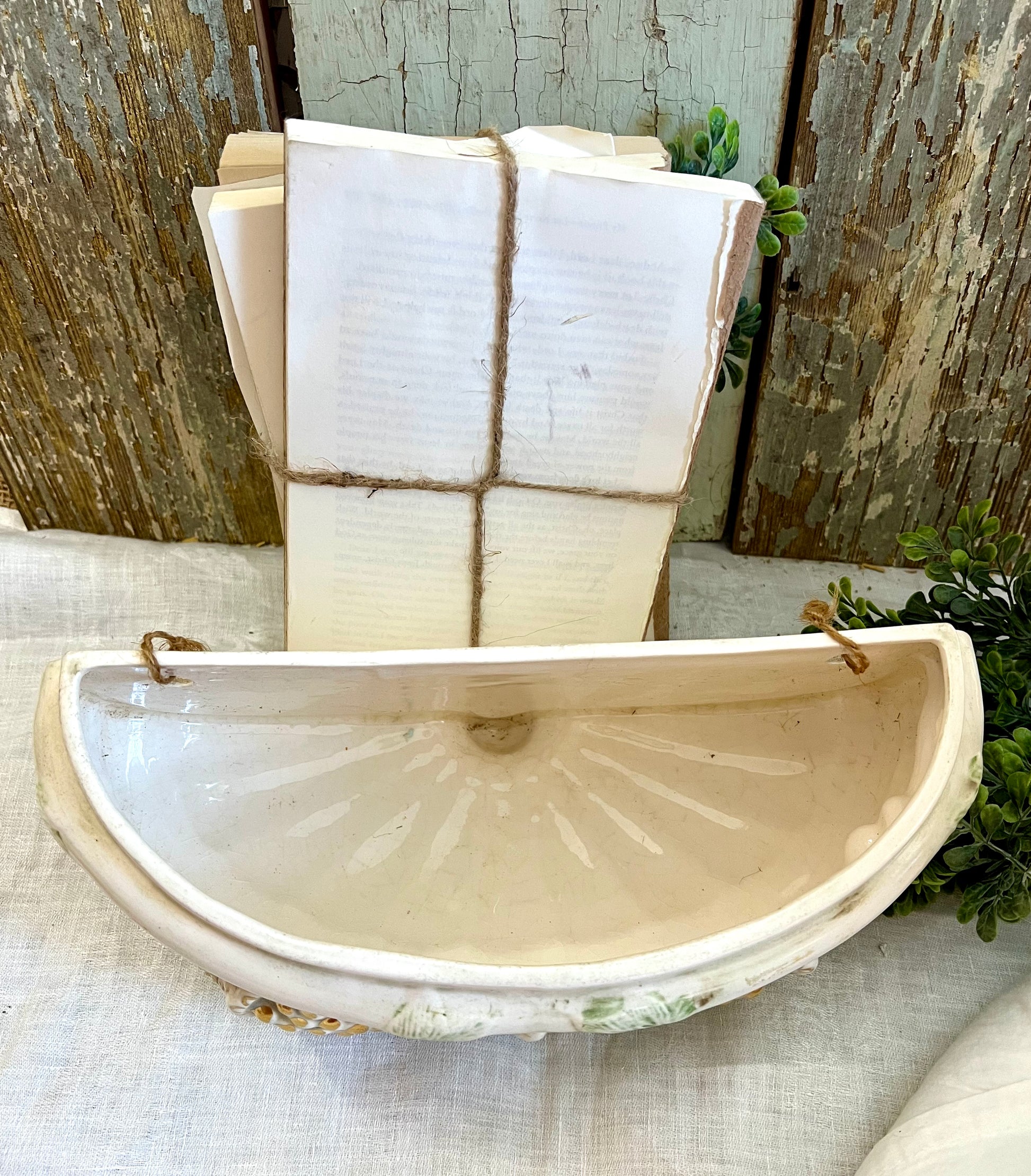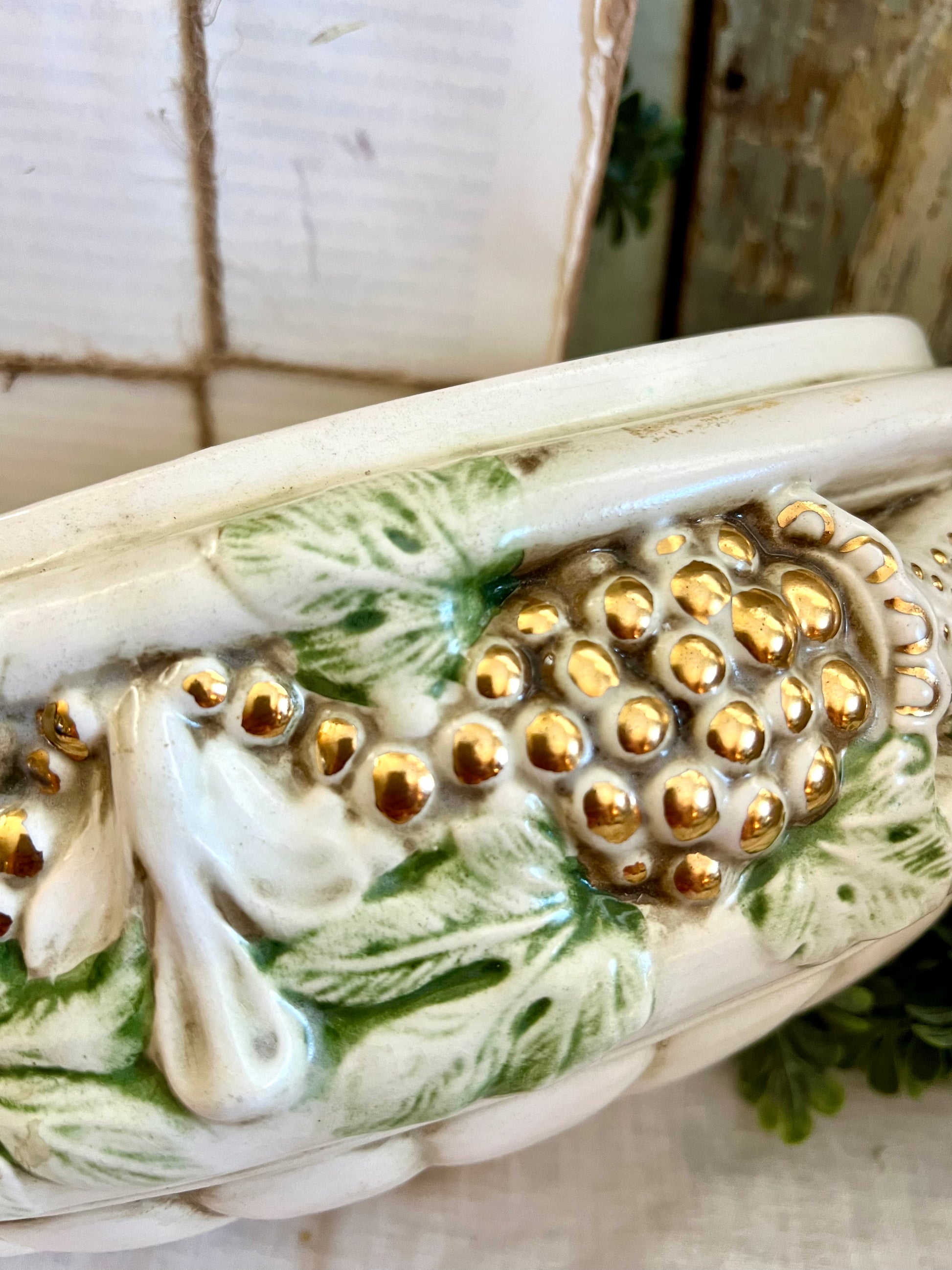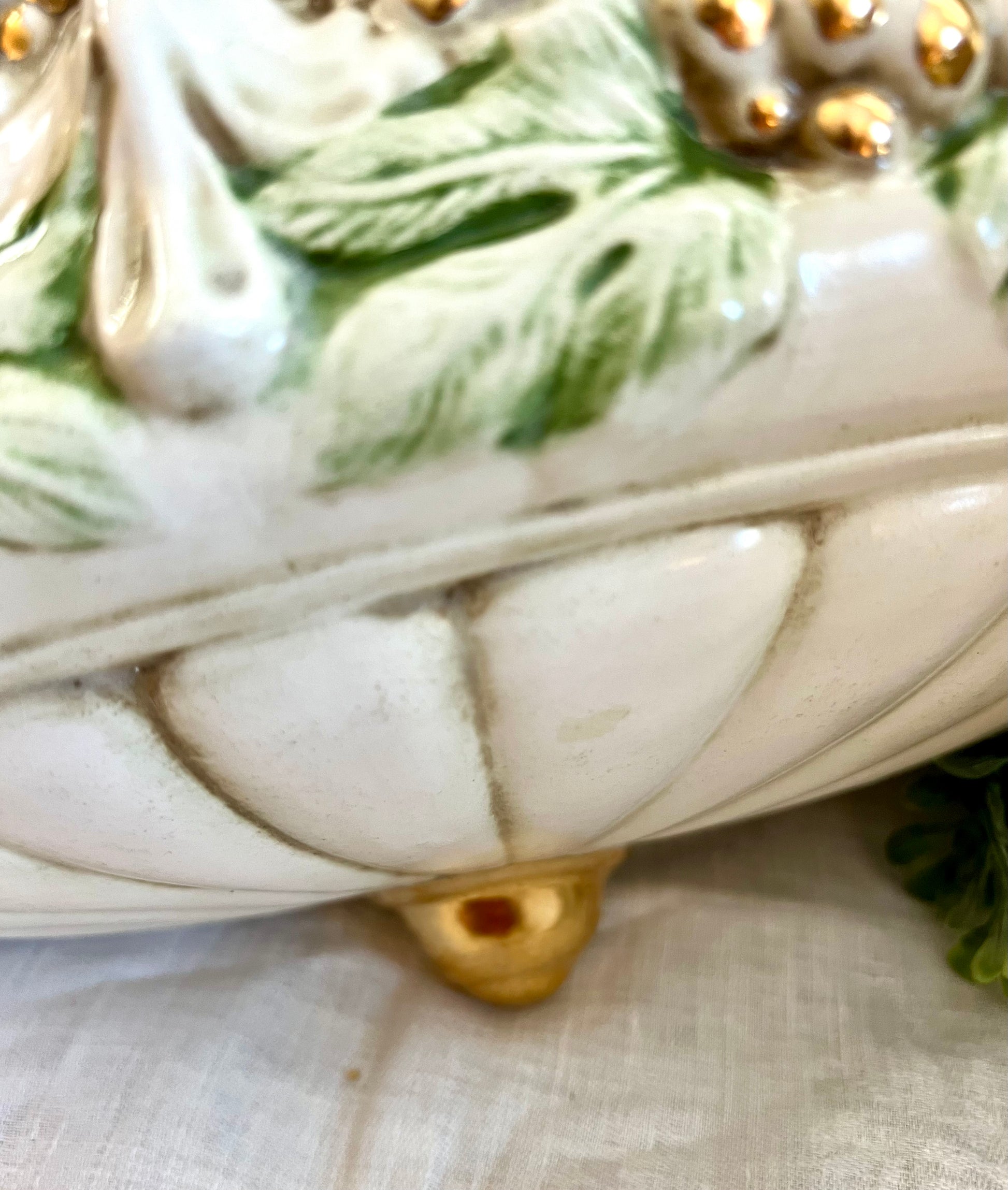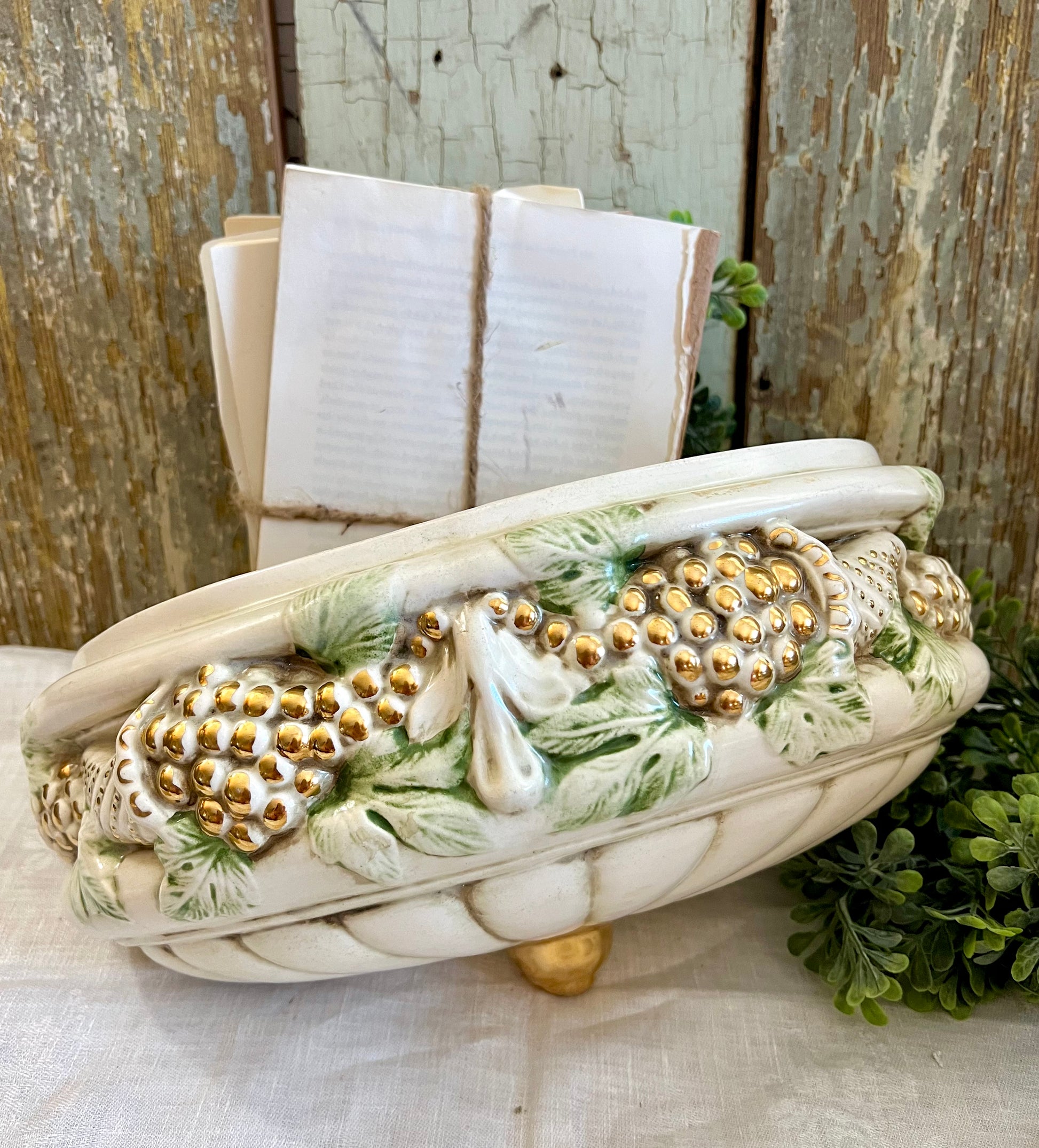Vintage ceramic wall planter. Beautiful grape & leaf detail, 13" long, 4" wide, 5" tall