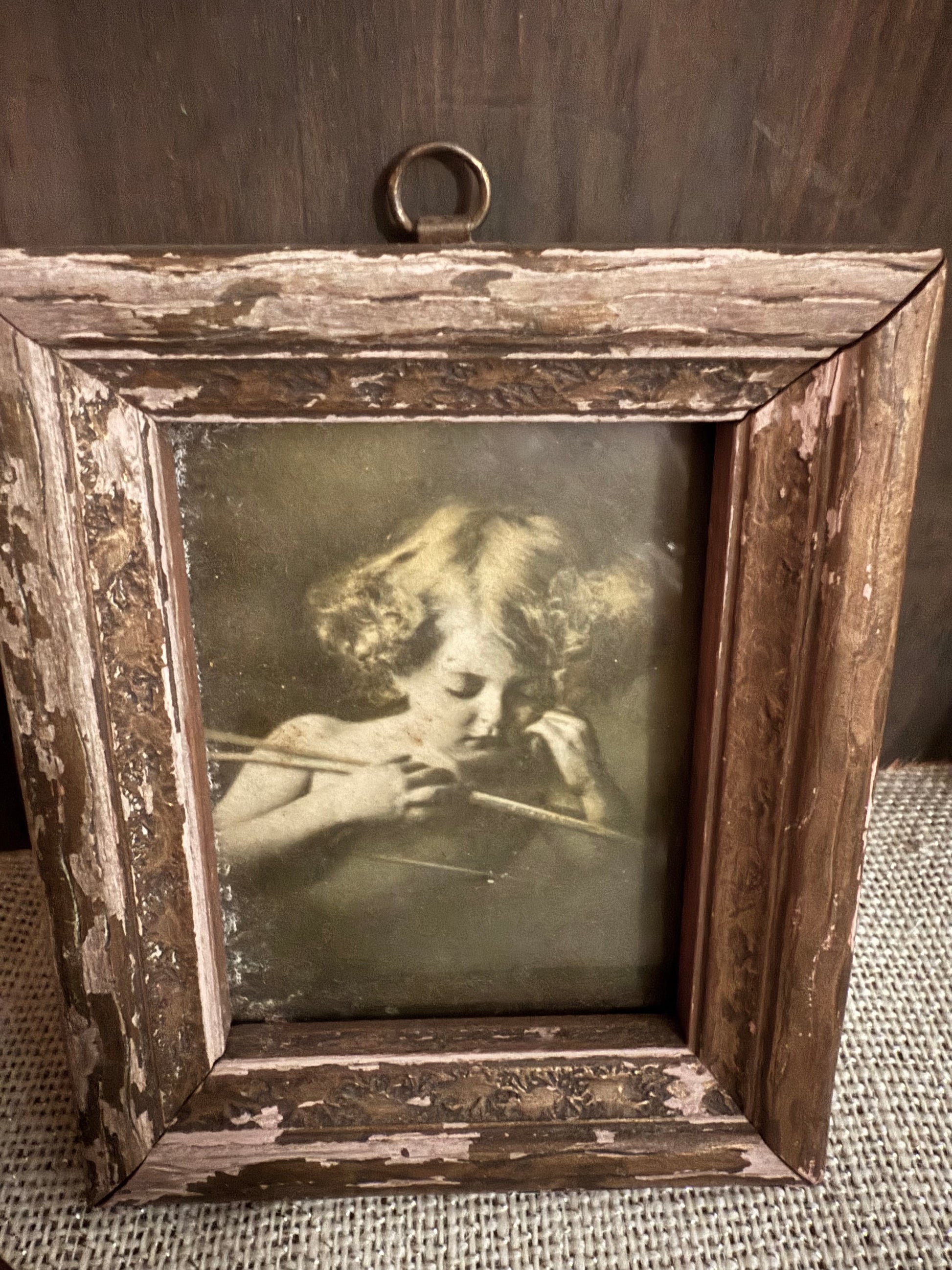 The picture is precious but the frame steals the show! Lots of chippy goodness here. The antique wooden frame measures 4"x5" and the sweet child photograph is icing on the cake.