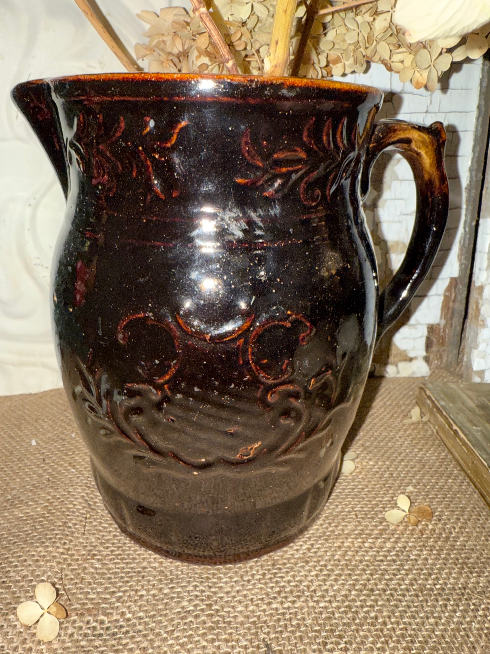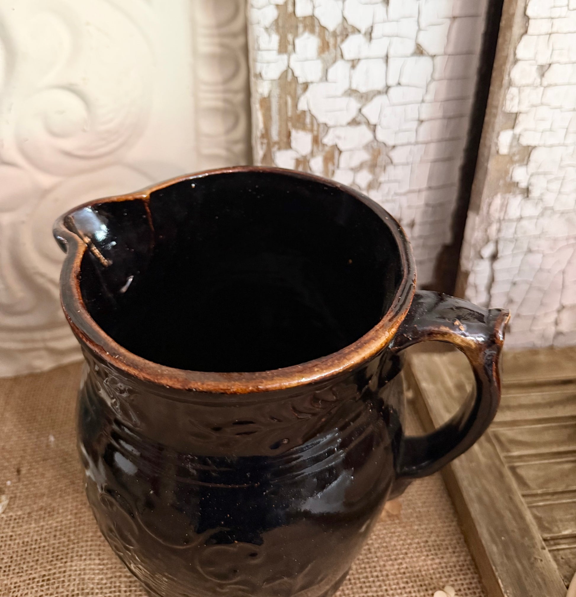 Chocolate Brown Stoneware Pitcher