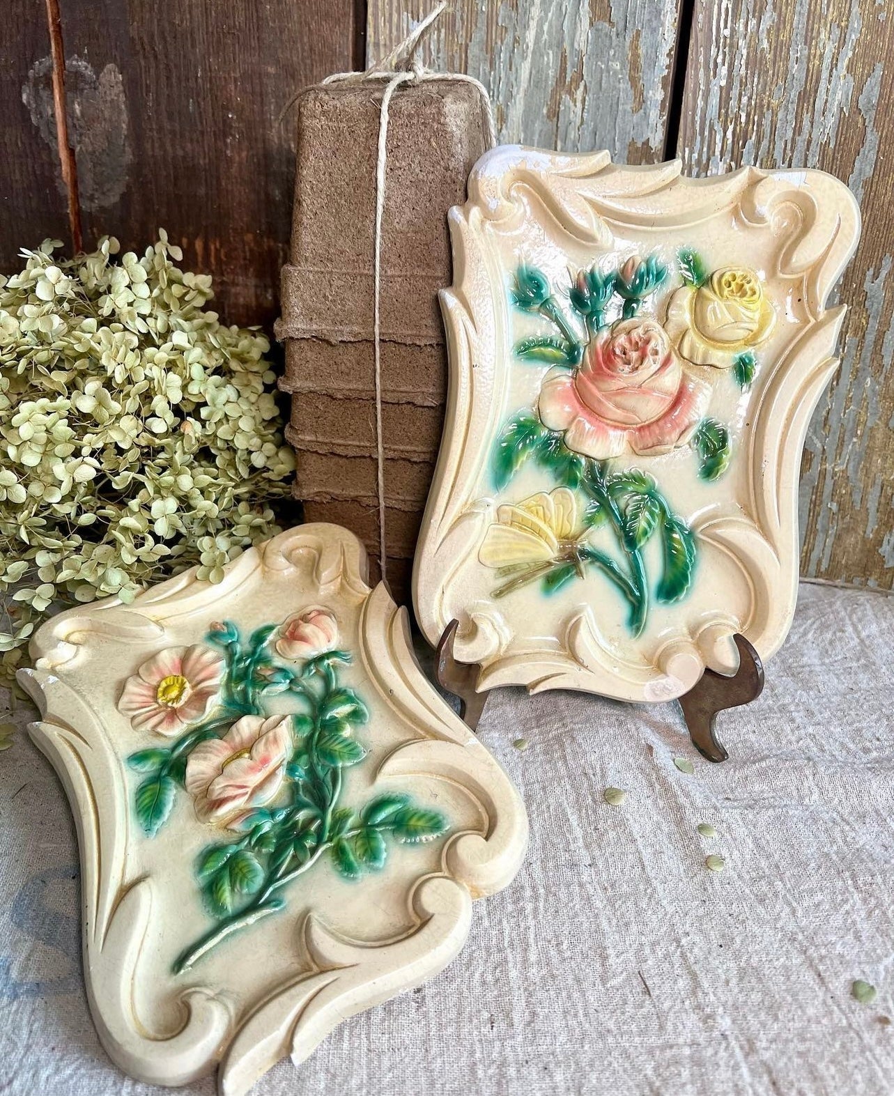 Set of Two 7"x 9" vintage wall plaques. Made of plaster. Beautiful floral detail.