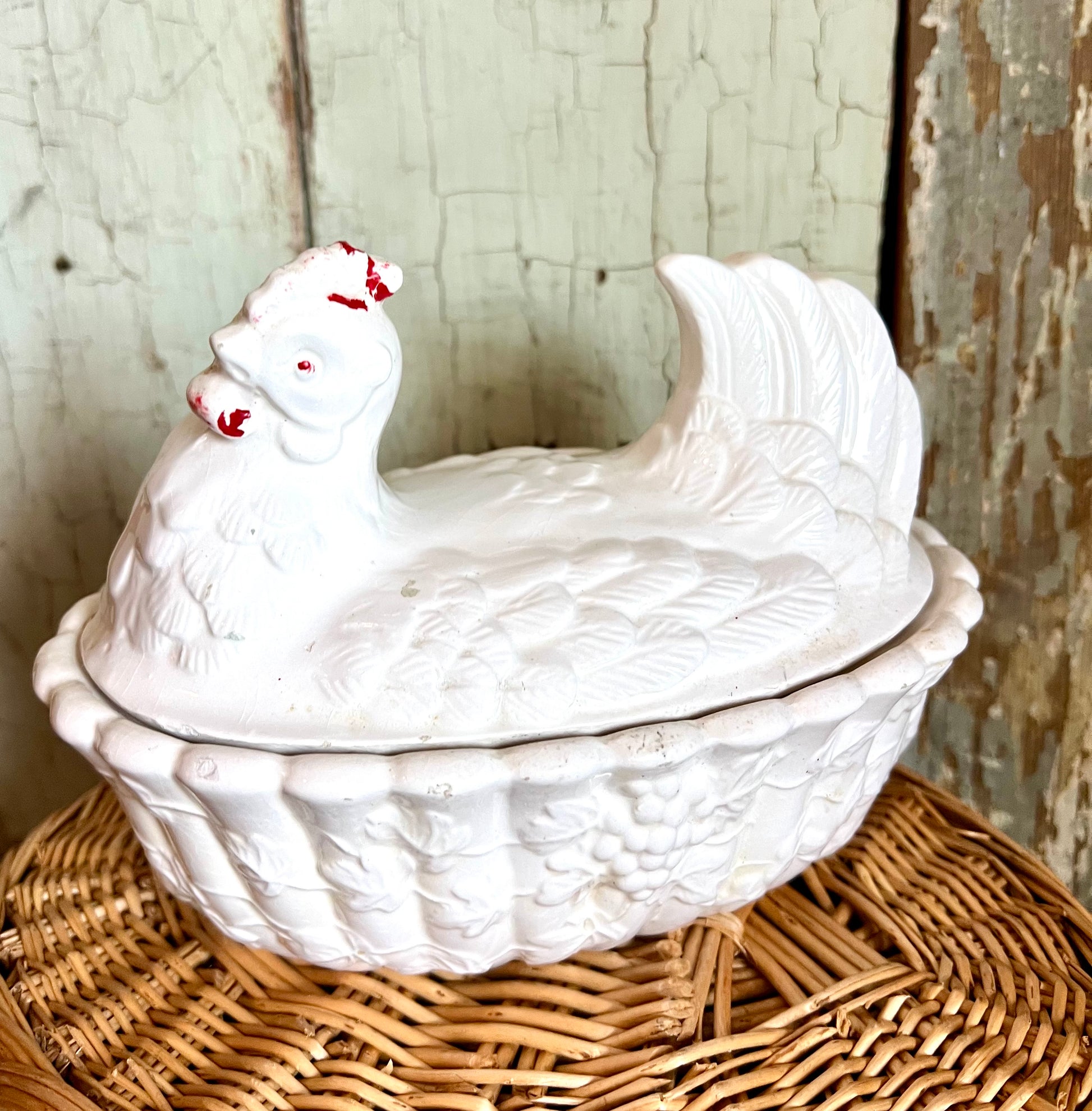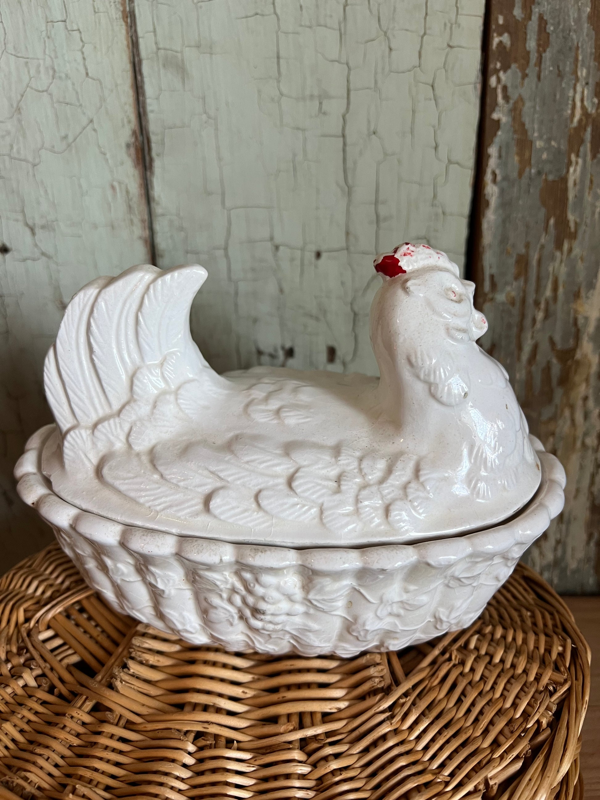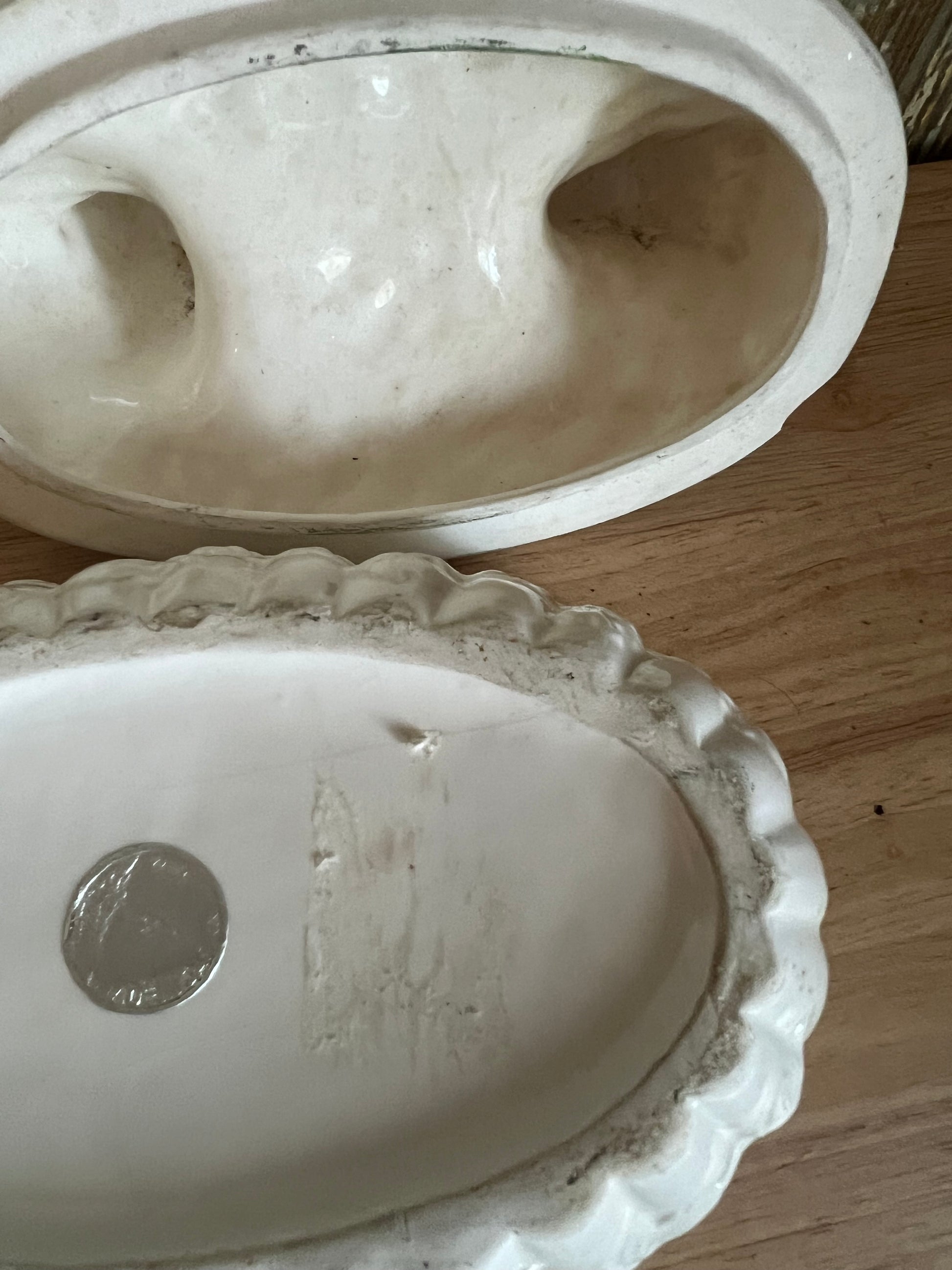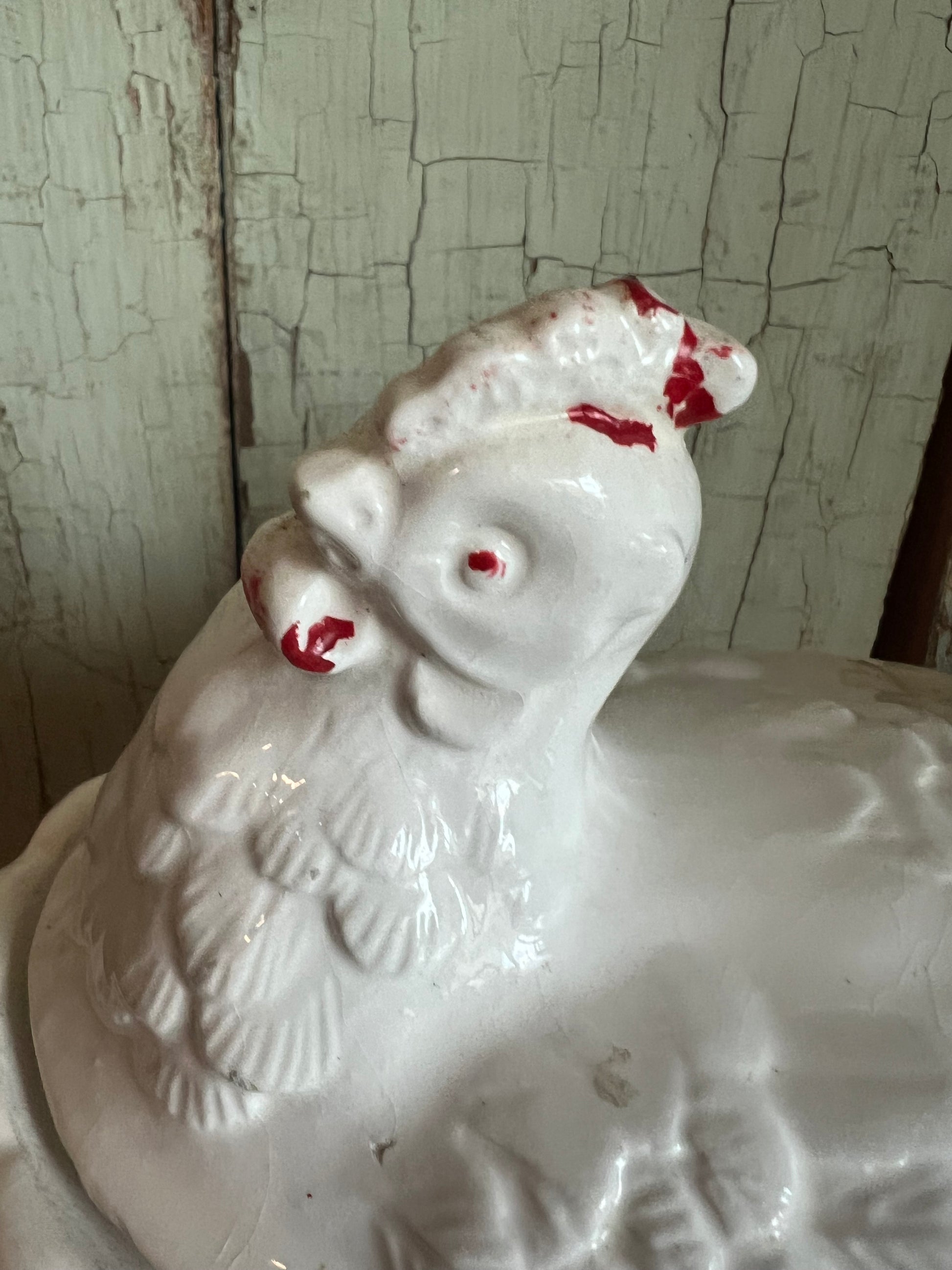 The red paint on the head has faded due to age. There is also a small chip and crack on the backside.