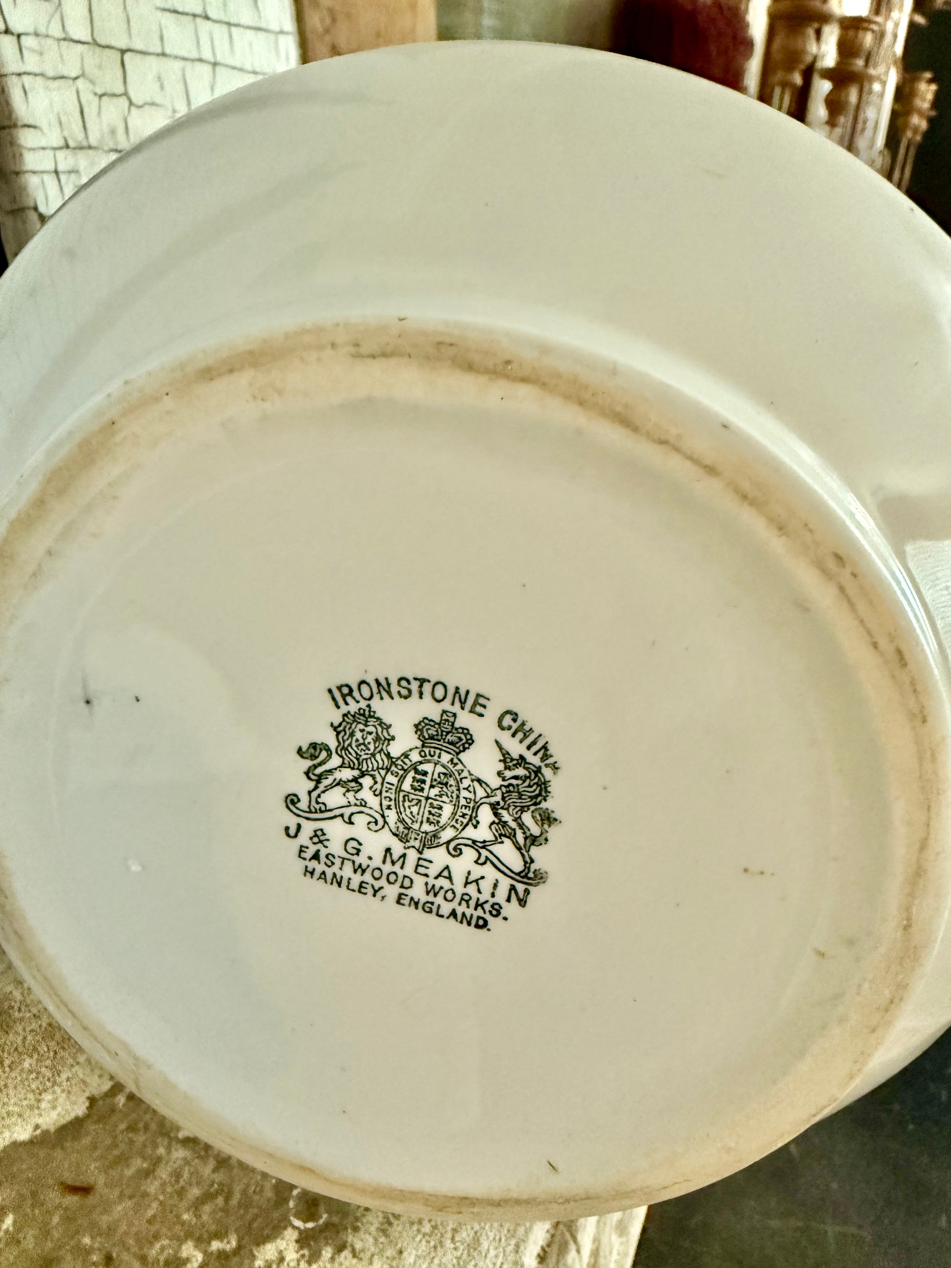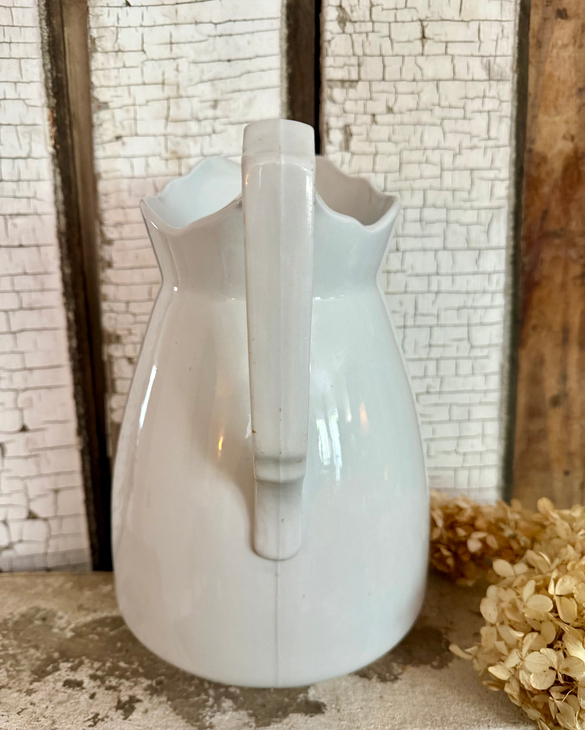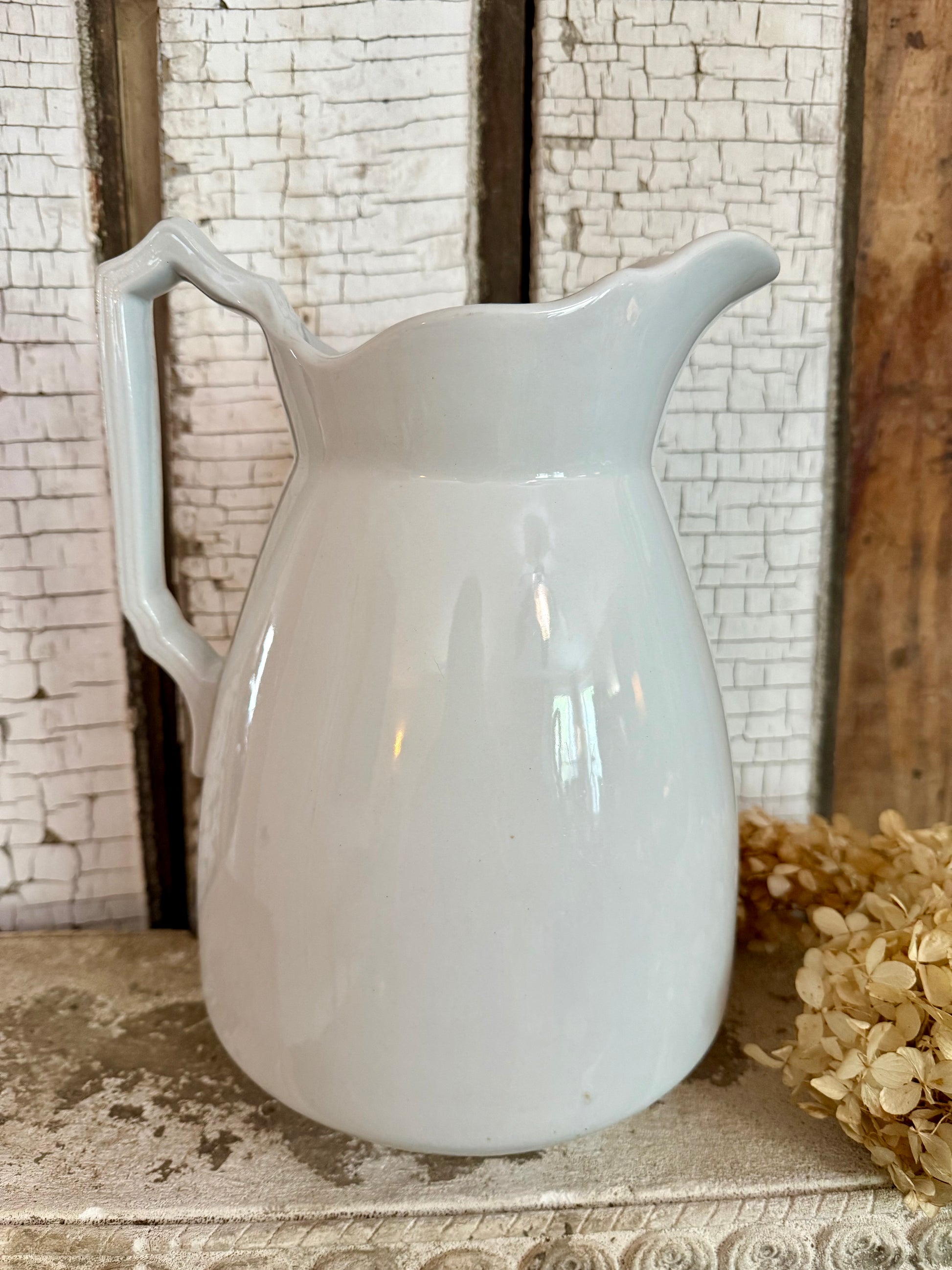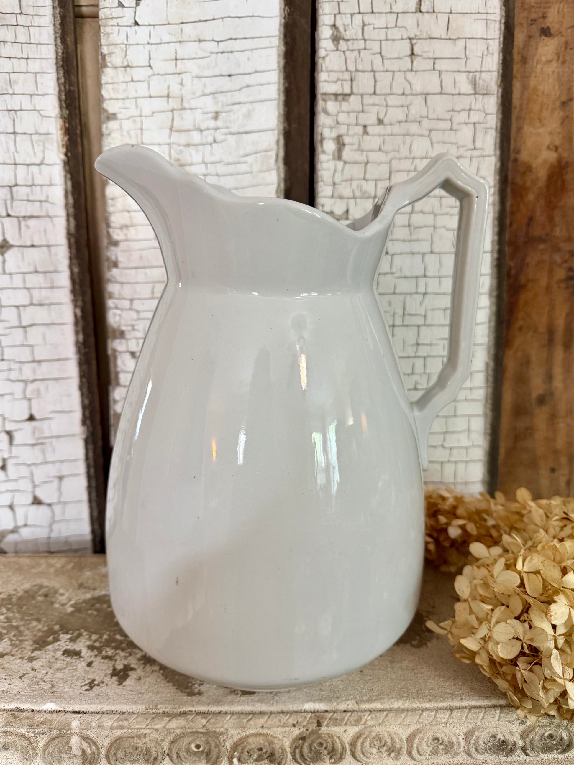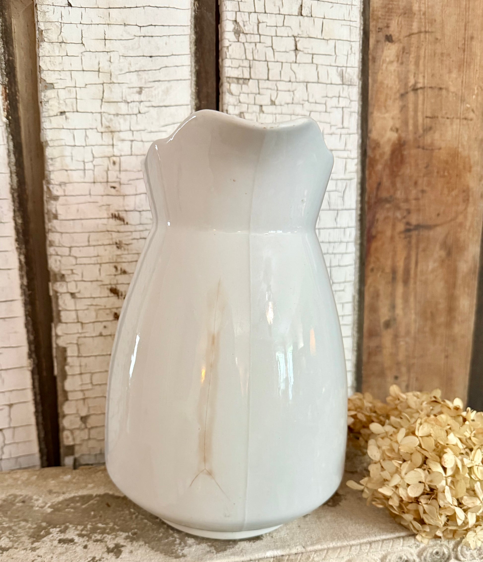 12" tall, 8 1/4" handle to spout. She has a hairline with some staining, otherwise in great condition!