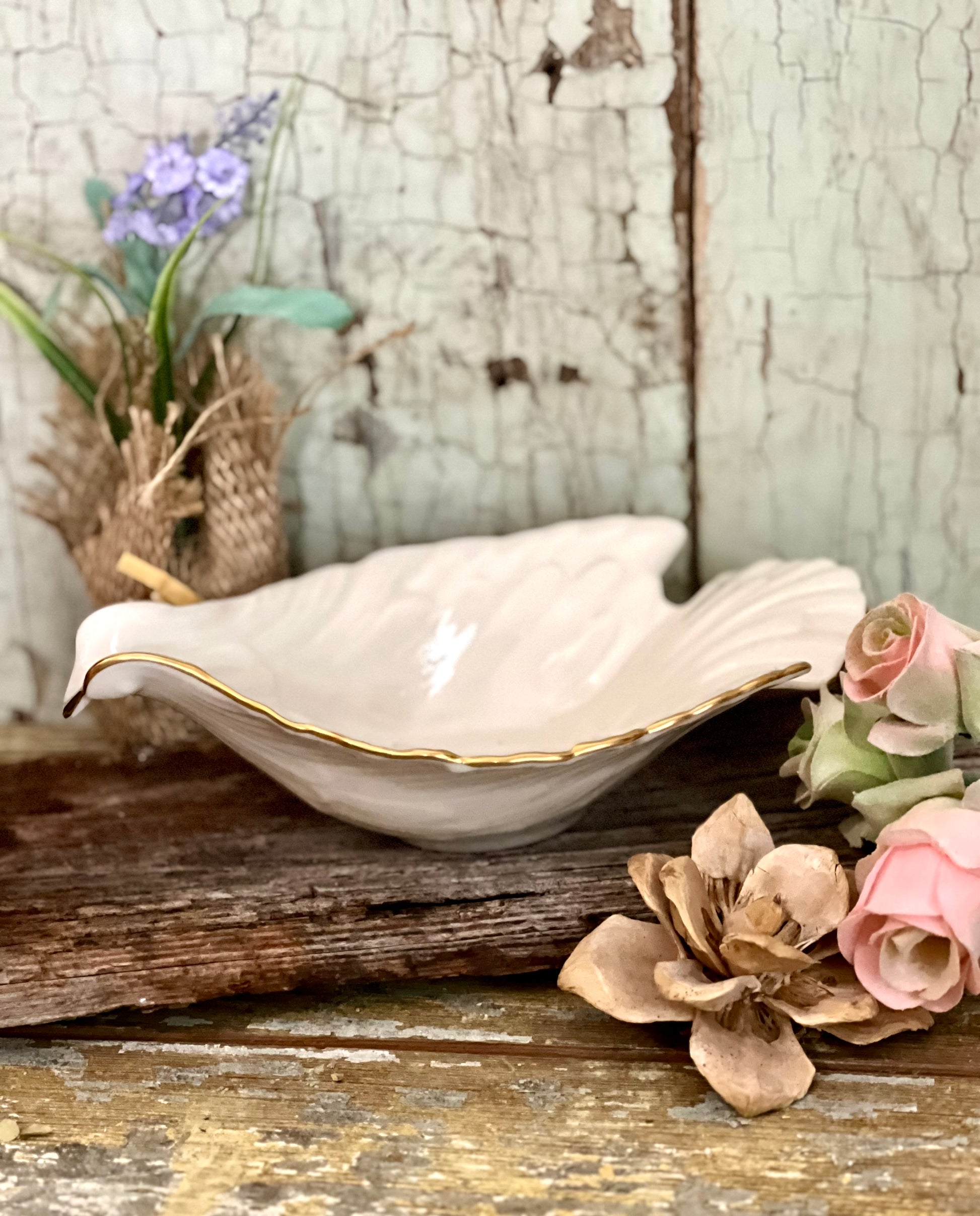 Beautiful bird dish made by Lenox. Cream with gold trim. 8" long, 5" wide.