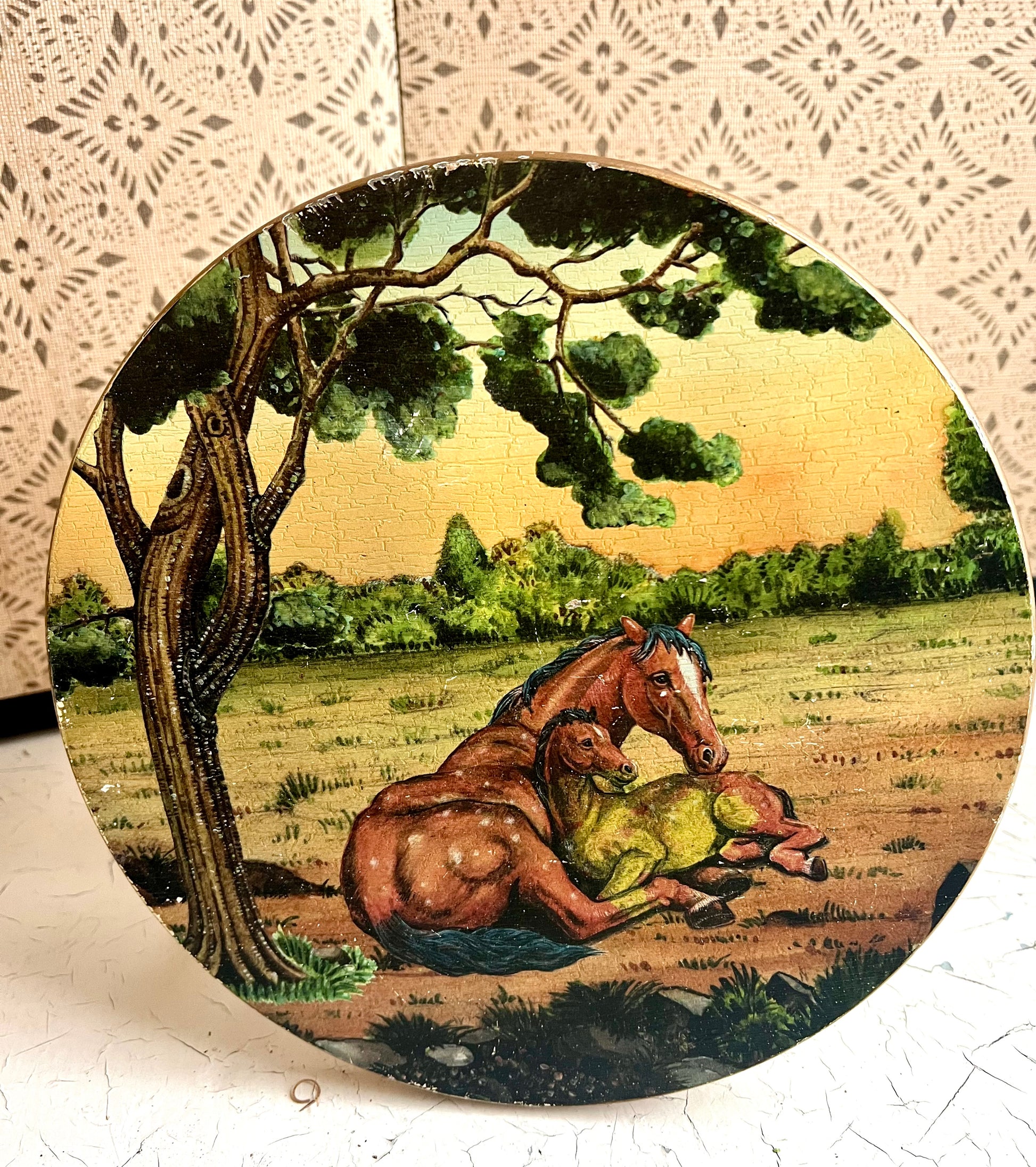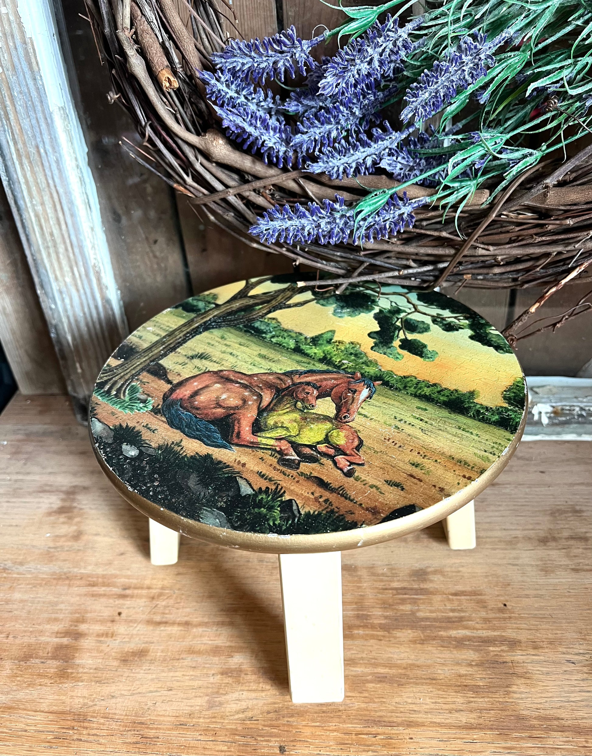 Painted Horse Stool: 6" tall, 9 1/2" diameter