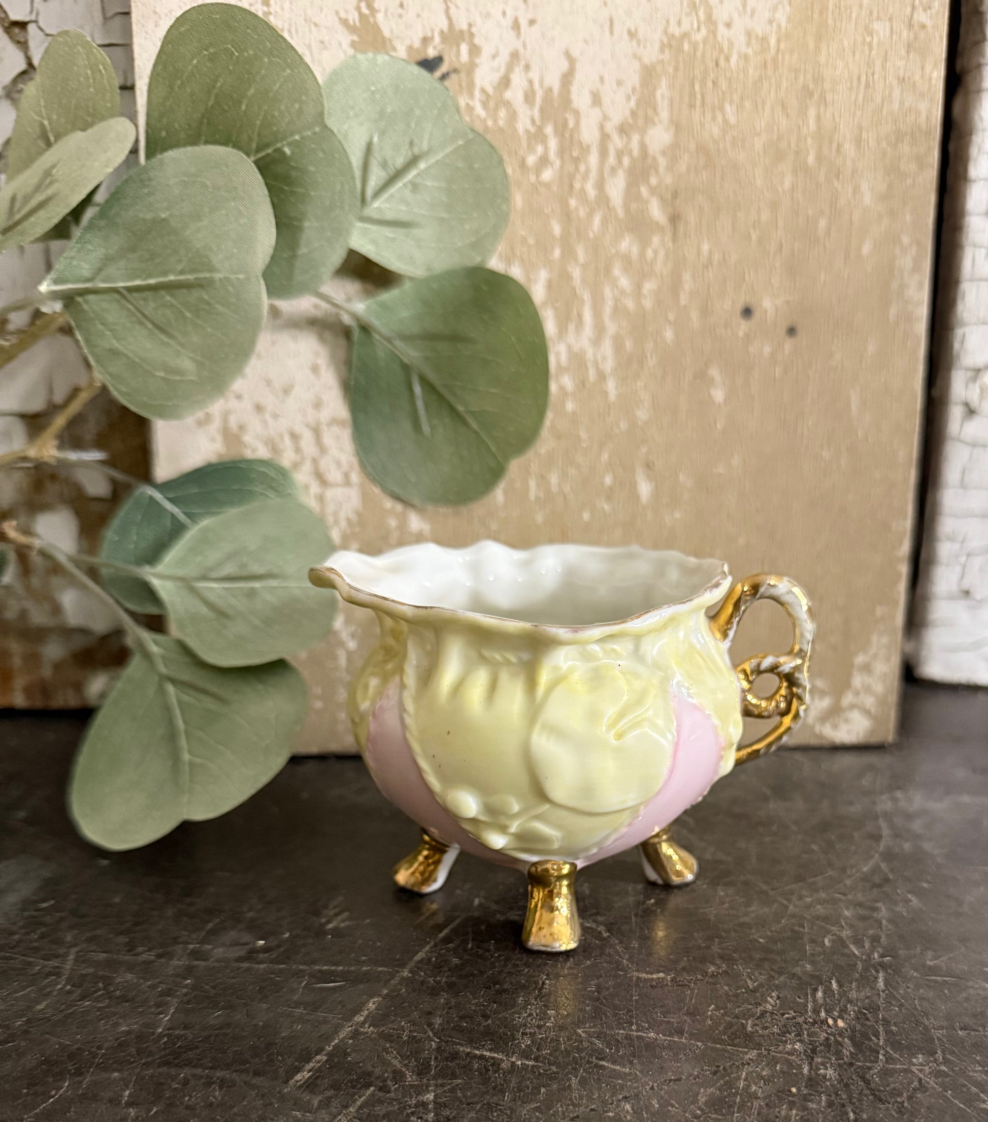 Pink & Yellow Quilted Footed Creamer