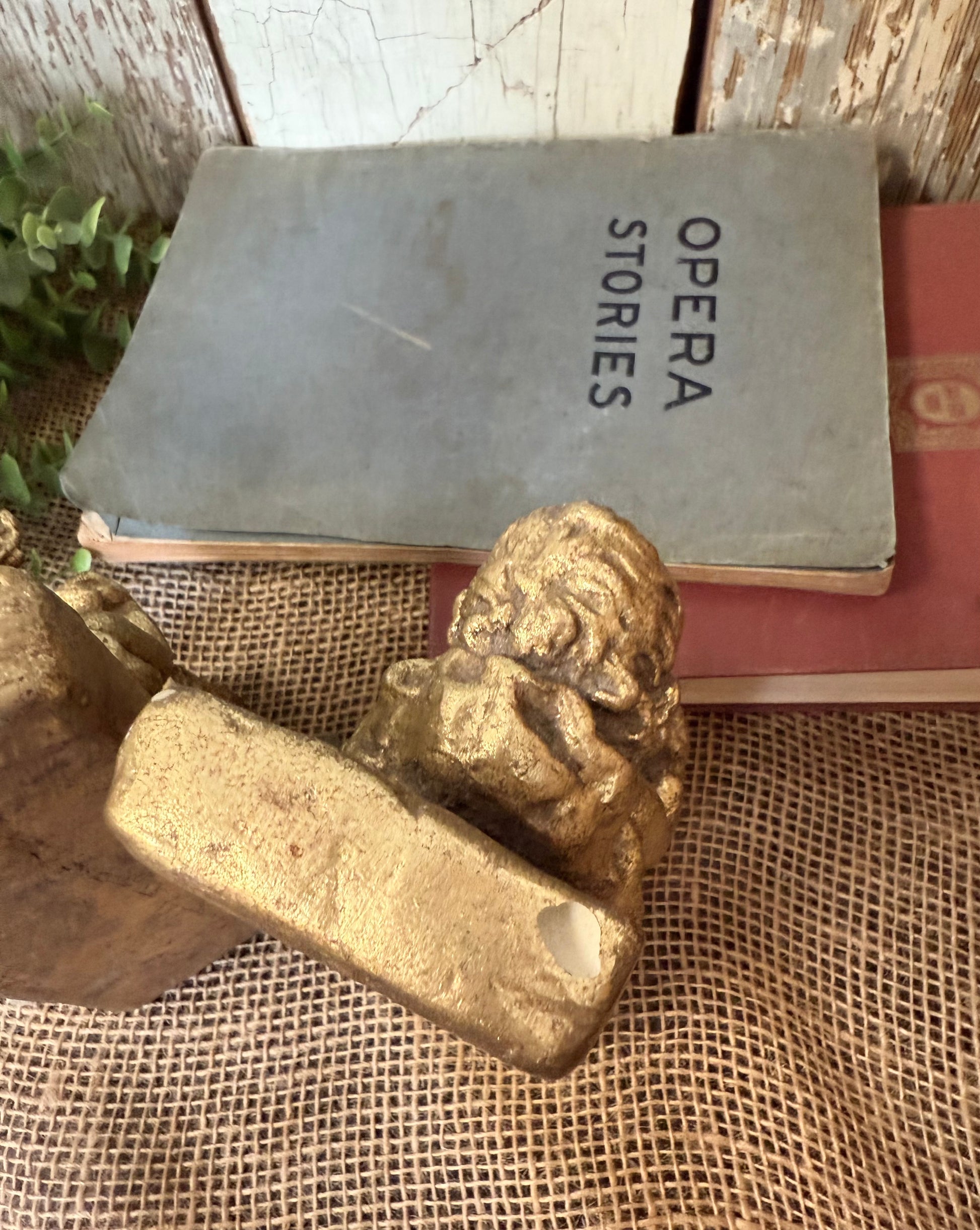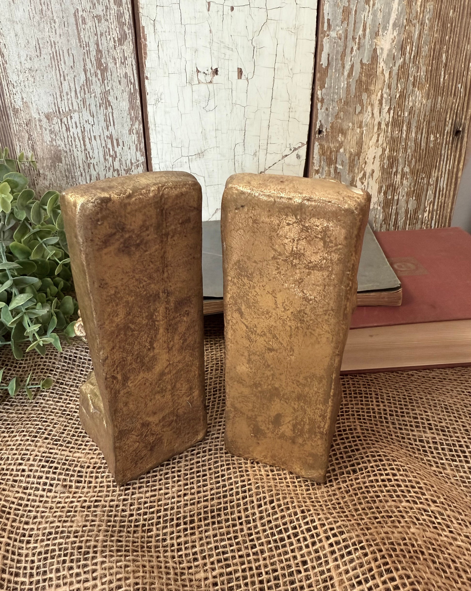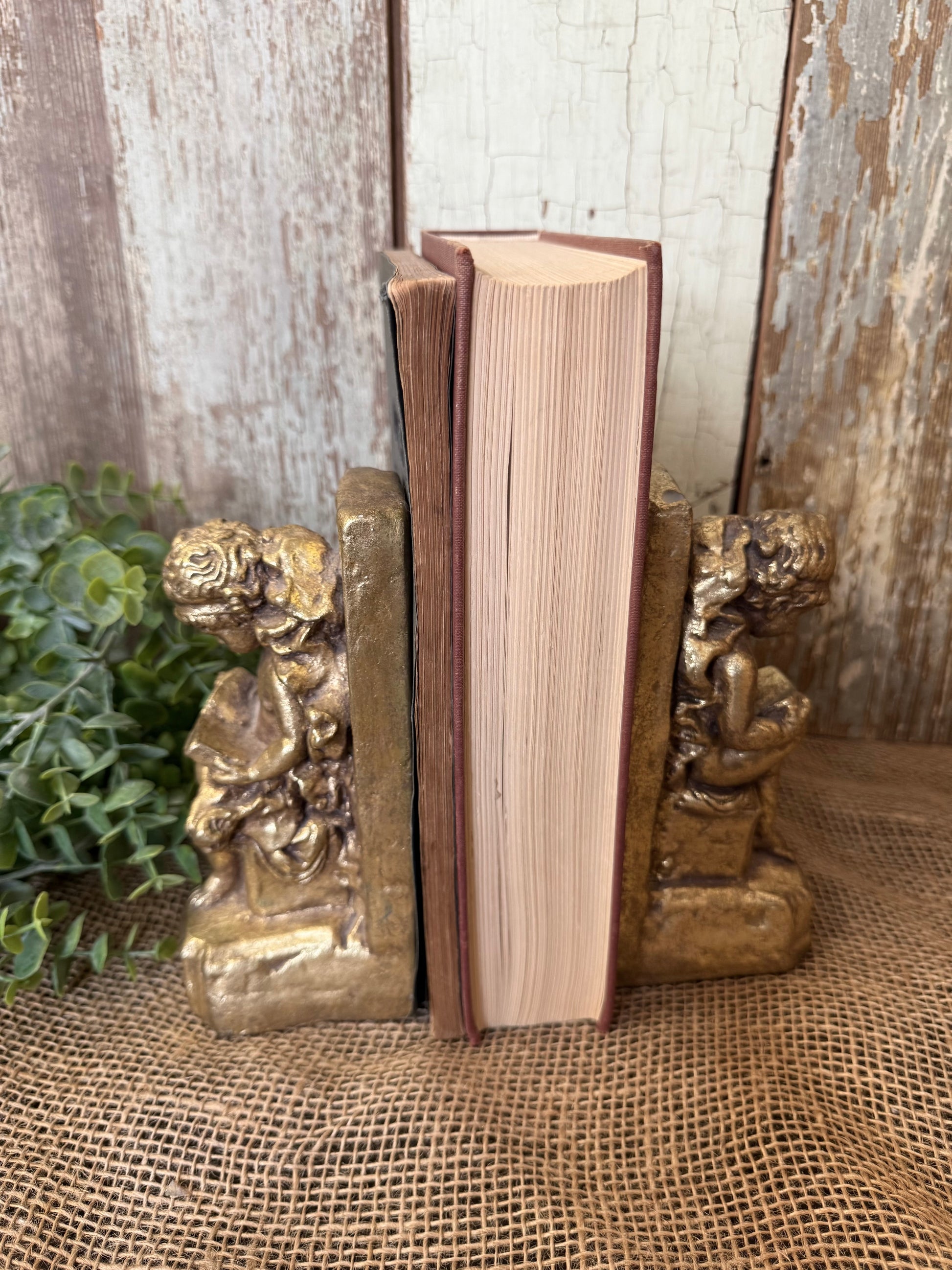 Gold resin statue bookends of a sitting child reading a book. 2 1/2" wide, 6 3/4" tall, and 3 1/4" deep. Some minor chips along the base but, overall, in great condition!