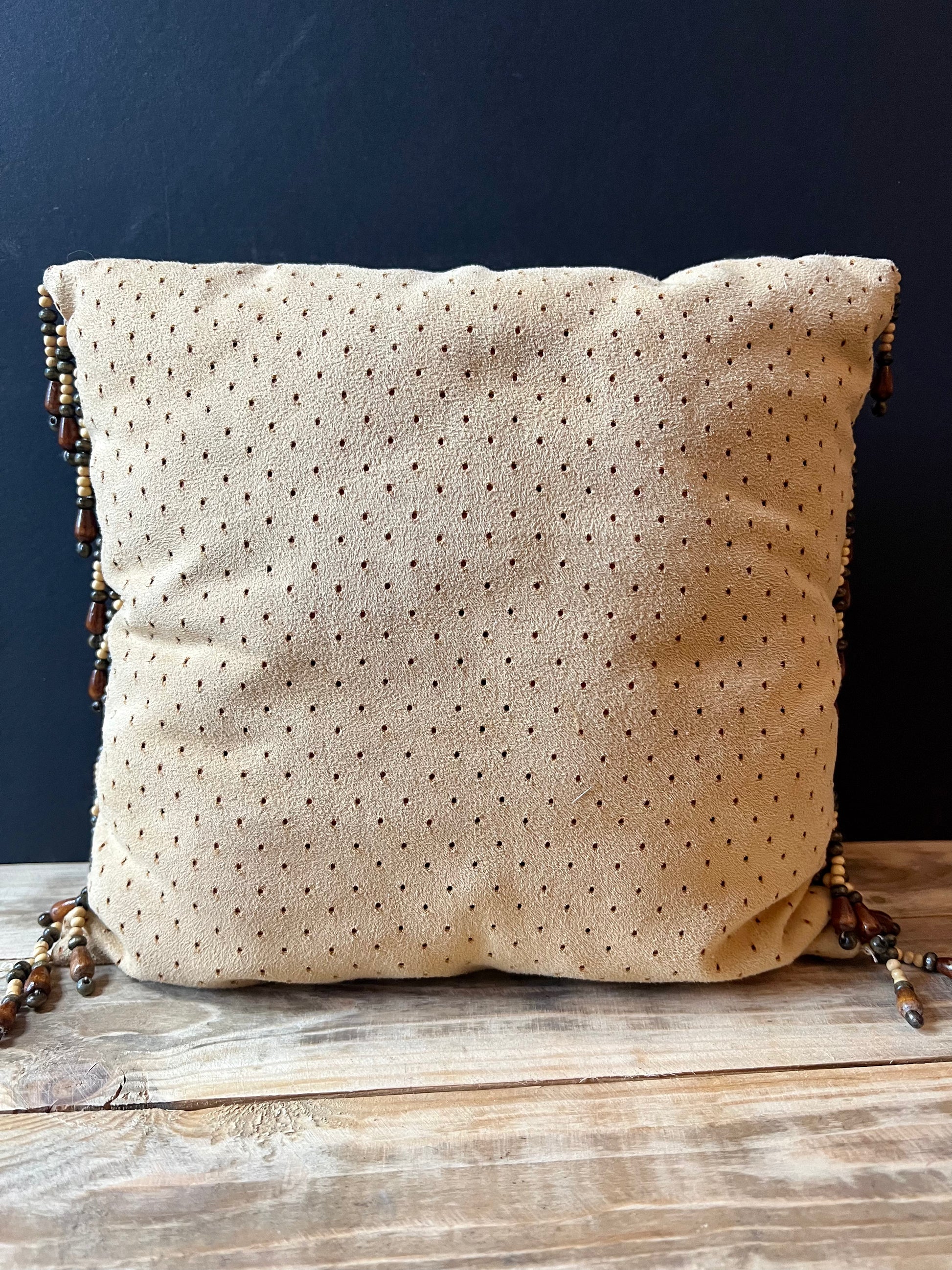 NEW! 10" square suede accent pillow with beaded fringe.