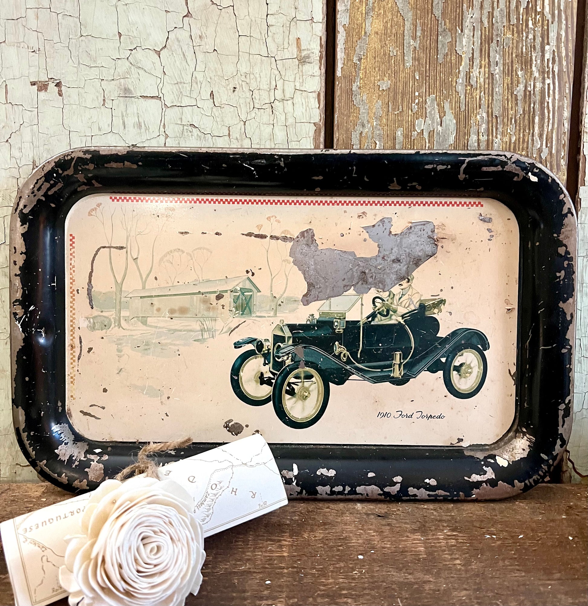 Tin 1910 Ford Torpedo Tray: Great rust & crust!