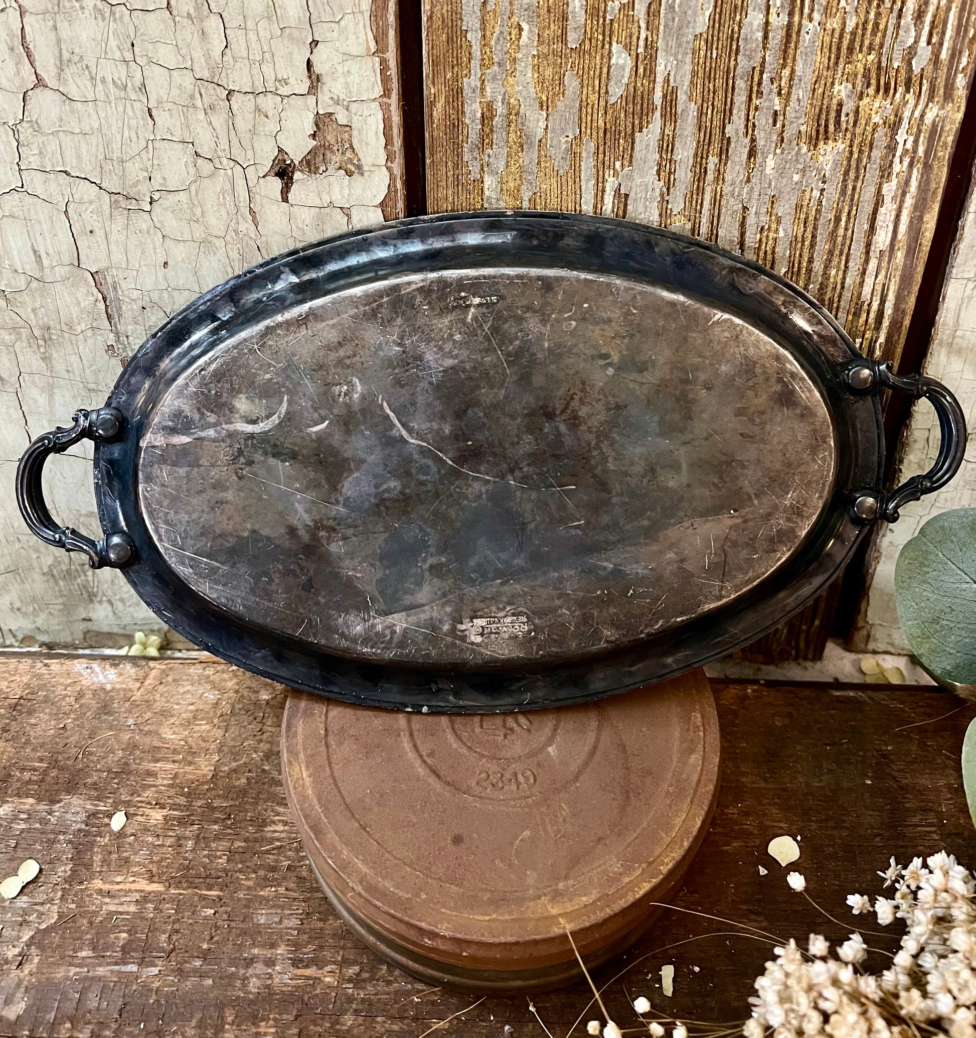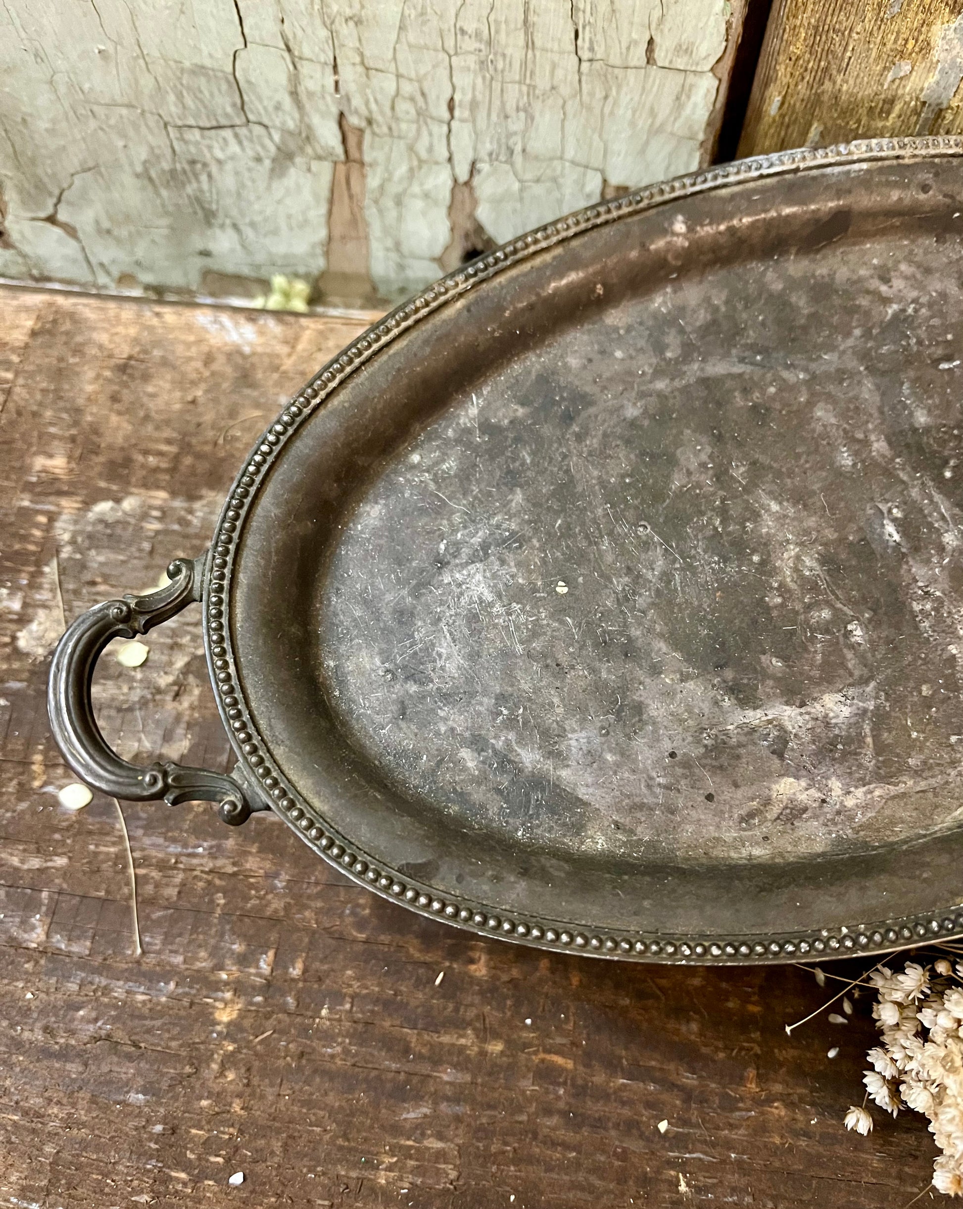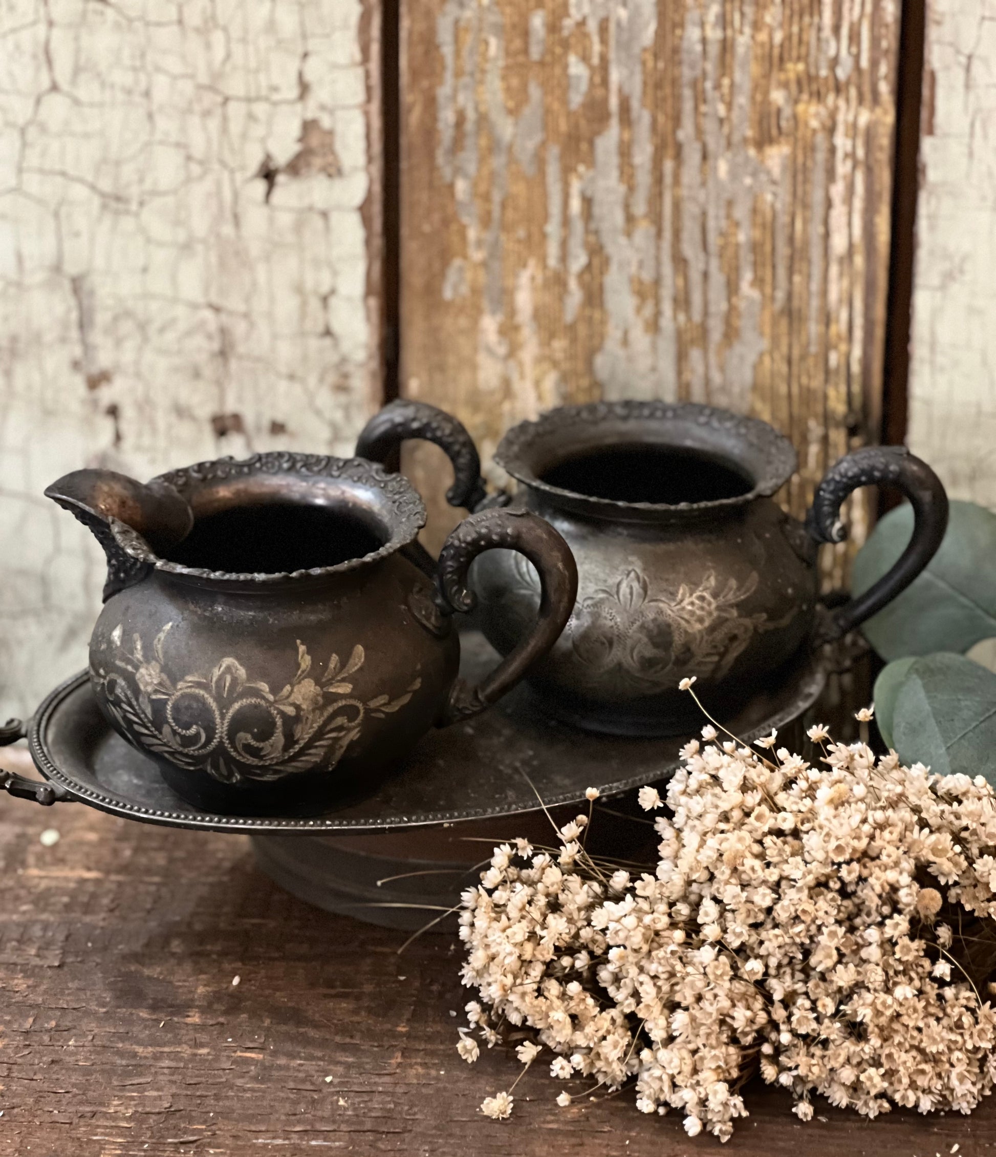 Vintage Van Bergh Silver Plate Creamer & Sugar Set: Be sure to view all photos to see all of the amazing detail. The tops of the rims are absolutely stunning! Tray: 6 1/4 X 11 3/4, Creamer: 6" handle to spout, 4" tall. Sugar: 7" handle to handle, 4" tall.