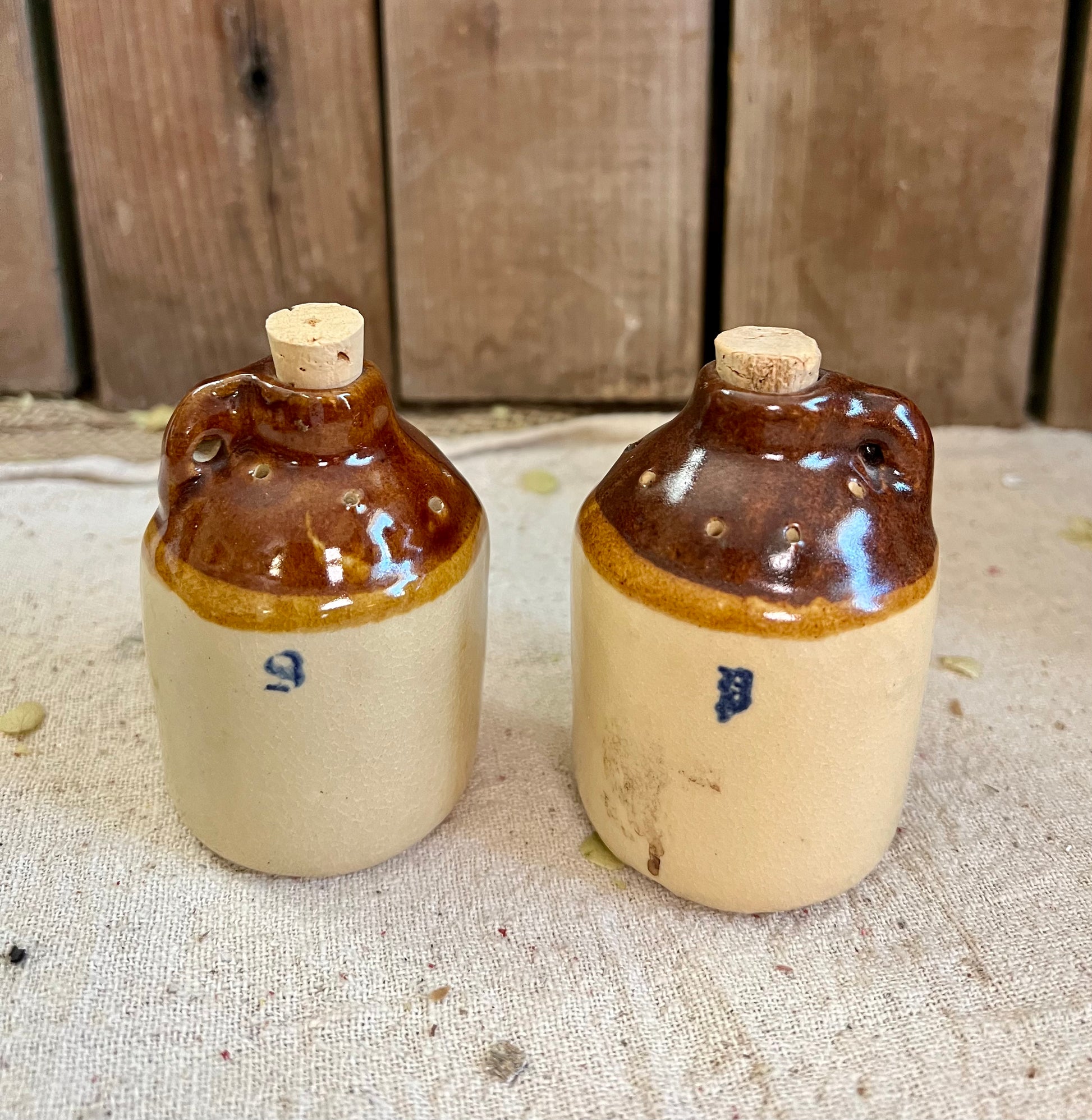 Old Jug Salt & Pepper Shakers: Circa 1950. 3 1/2" tall.