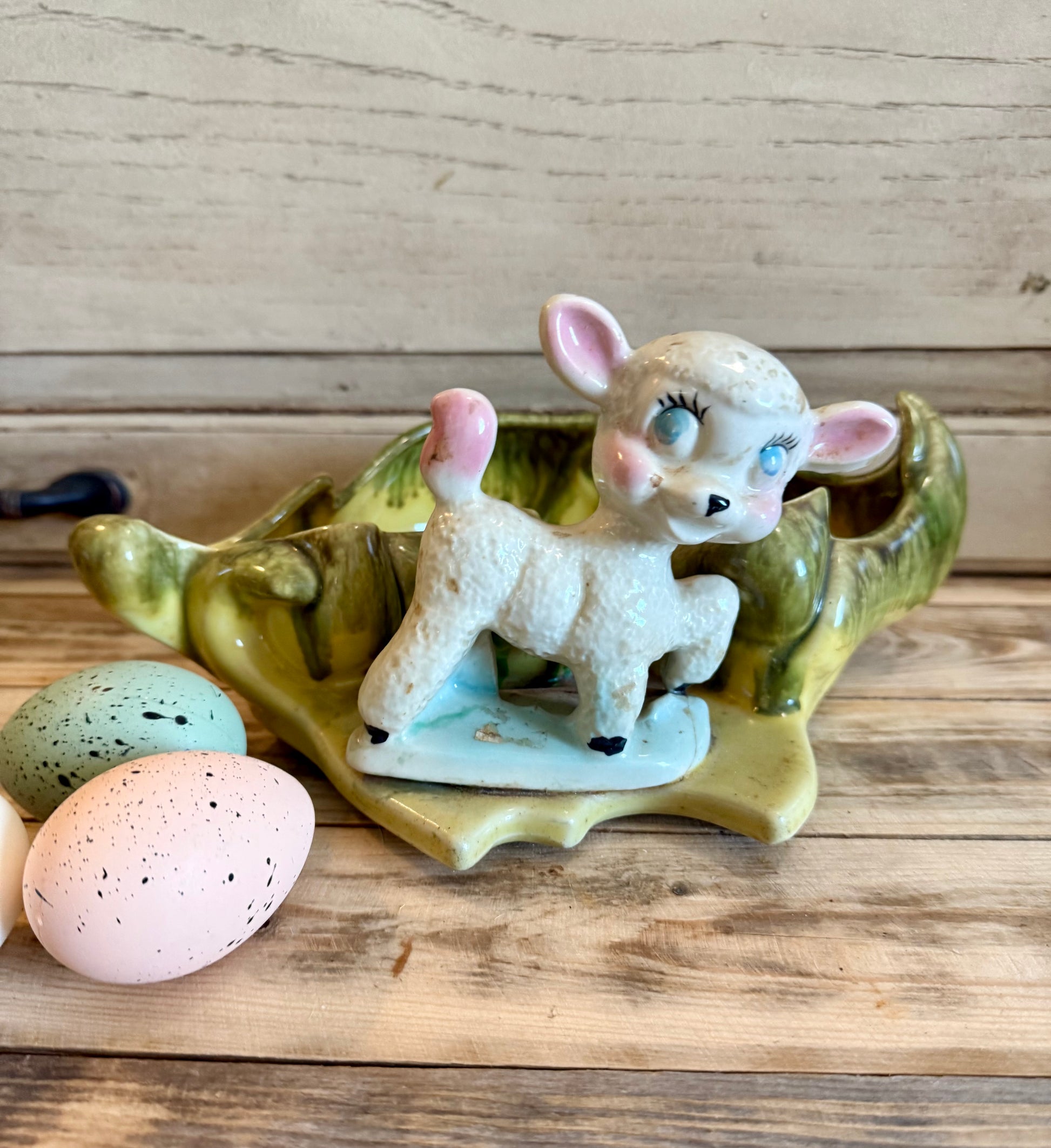 Vintage 1950's Lamb planter Drip pottery 10" " long, 7" deep, 5" tall