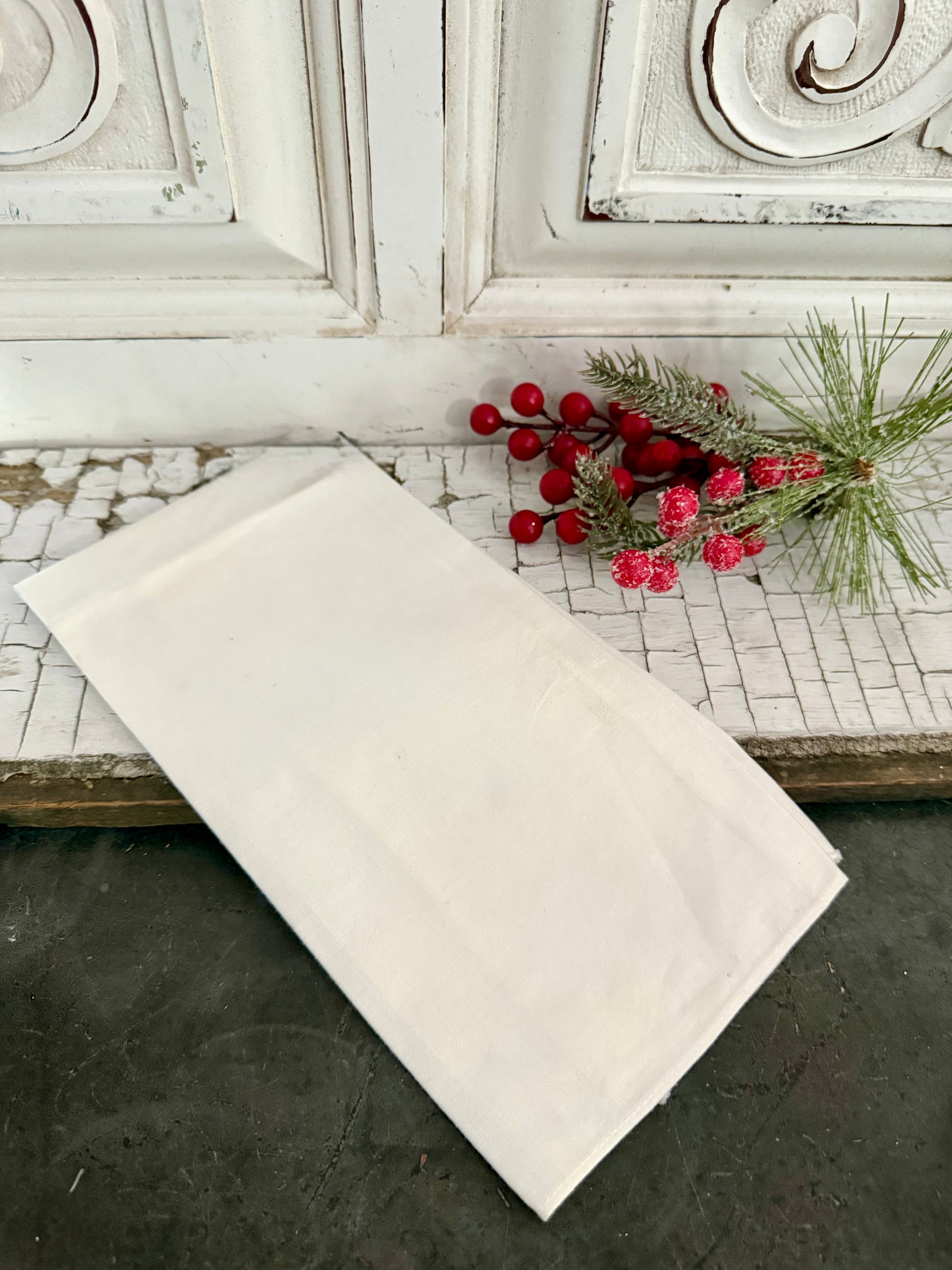 Linen hand towel with beautiful poinsettia embroidery. 5"x 10" folded.
