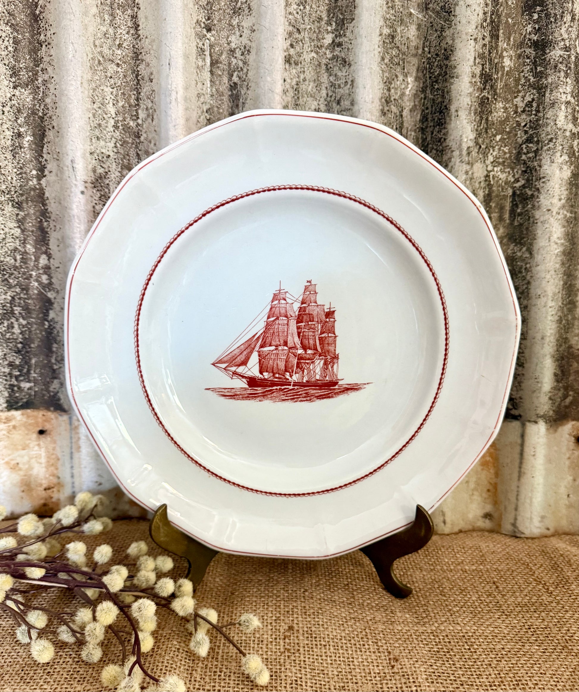 Wedgwood "Flying Cloud" Ship Plate 10 1/2" diameter Red Ship and rope design. Beautiful for coastal cottage, beach, or nautical decor!